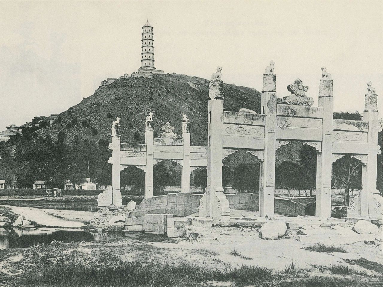 🍀图1、2、3、5、6、8、9,“湖山罨画”石牌坊和玉峰塔旧影,分别由拉里贝、穆默、佩克哈默和甘博拍摄于1900年、1908年、1917年和1925年间。