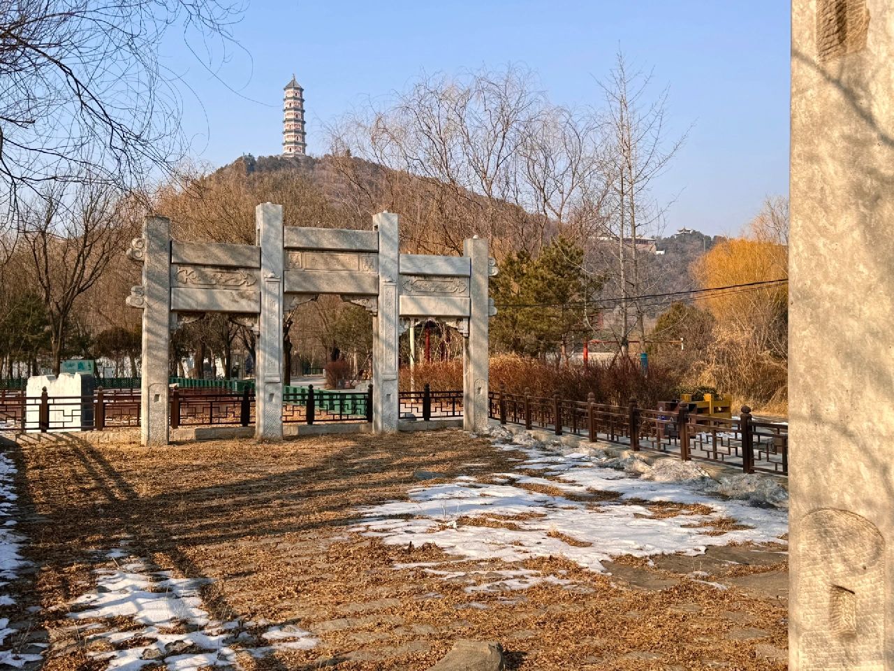 🍀“湖山罨画”石牌坊是乾隆皇帝规划“耕织园”外延千亩稻田时汲取南方水乡牌坊水路交融场景所设计。西望玉峰塔与石牌坊交相呼应、东望佛香阁与石牌坊相映成趣。如今这些相映的景观全无。“湖山罨画”石牌坊本该成为玉东北坞公园最具魅力和代表性的景观,如今此处场景设计及周边建筑袭扰无疑成为遗憾之景。