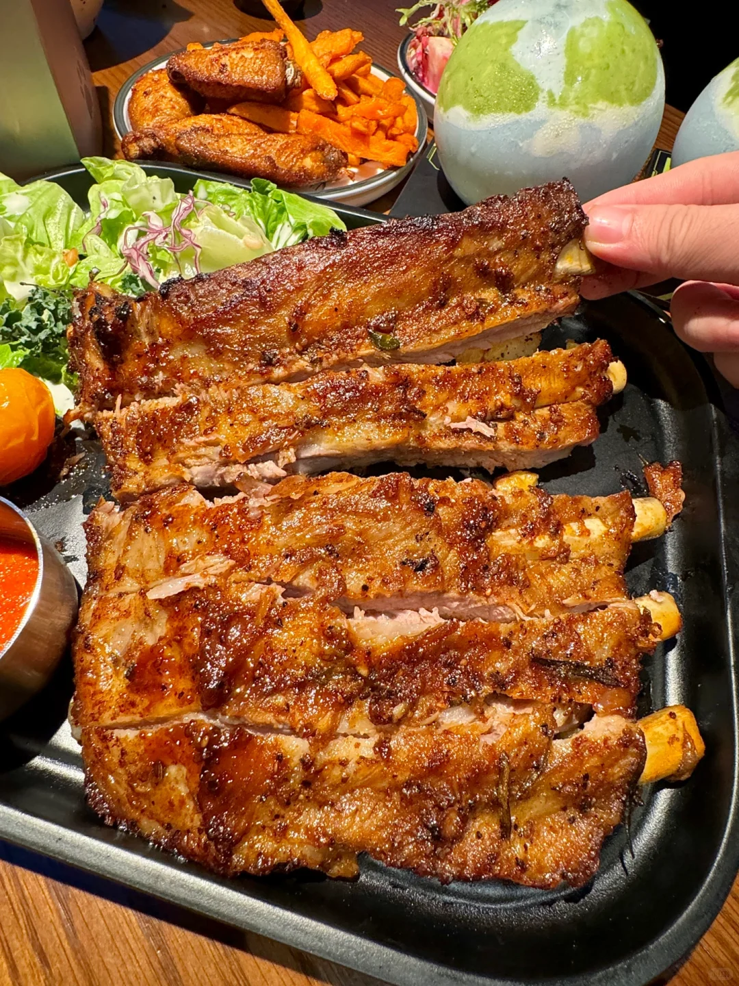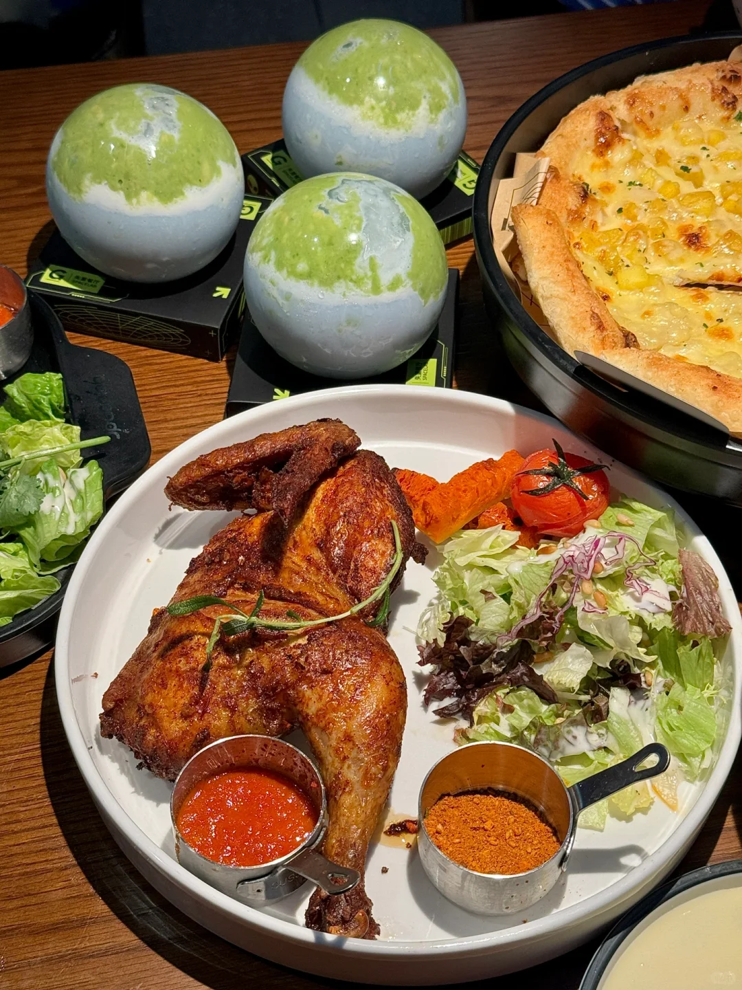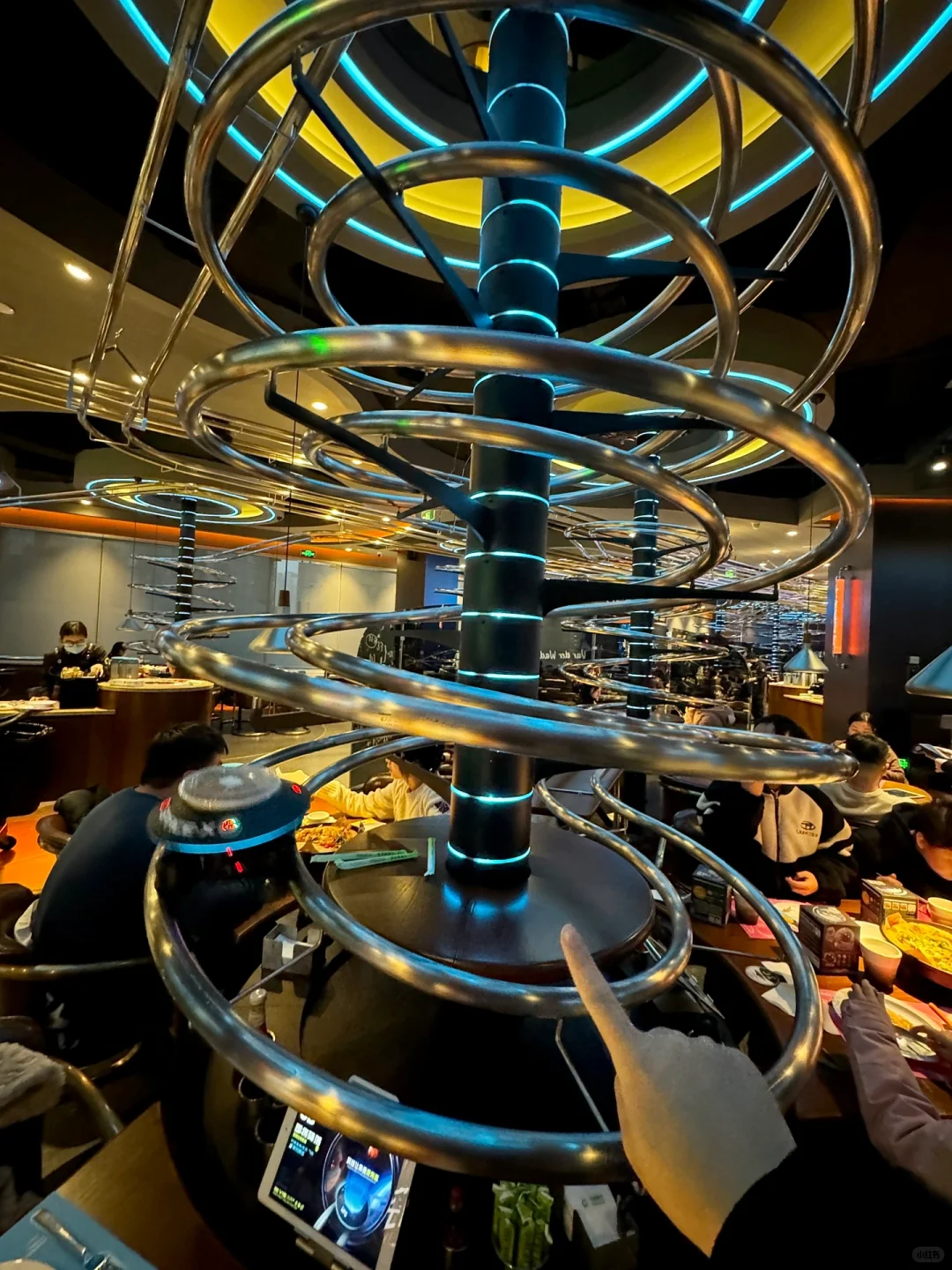 德思勤新开的失重餐厅!!太有意思了!! 怪不得能🔥遍北上广啊…仿佛来到未来世界🌍整个餐厅科技氛围感十足!!送餐都是机器人🤖+UFO轨道环绕,仿佛飞碟🛸一样旋转下来太哇塞了!! 菜品也好吃、点了满满一桌都没踩雷:伊比利亚烤黑猪肋排巨巨巨香~食肉星人强推!!还有:失重香酥烤半鸡、榴莲芒果双拼披萨、甜香鸡翅配红薯条、流浪地球酸奶昔…亲测每道都精致好吃😋! 总而言之,真的很适合带小朋友或者约会!!