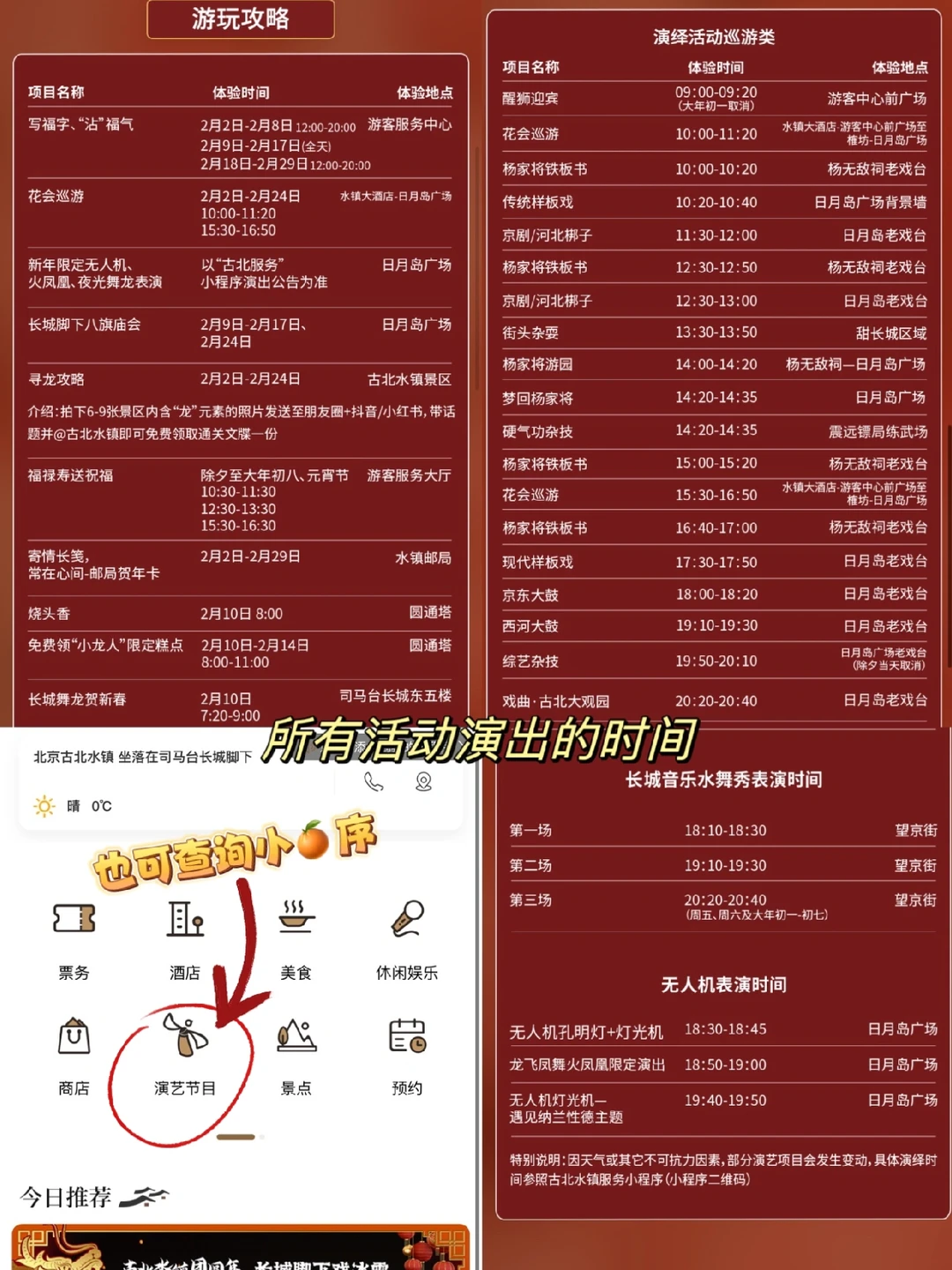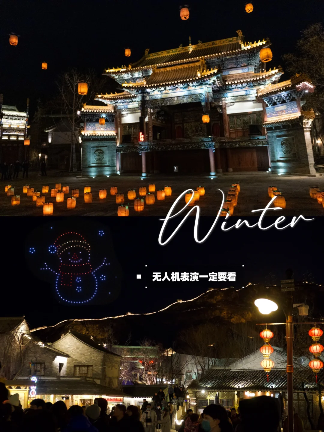 冰雪体验-汤市街氛围-日月岛广场表演/庙会-花会巡游-无人机表演/长城水舞秀-回家