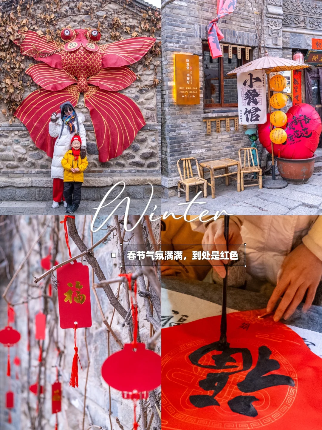 ➡️春节的小镇到处被红色装饰,福字、春联、灯笼、龙形图案,过年的氛围感拉满
