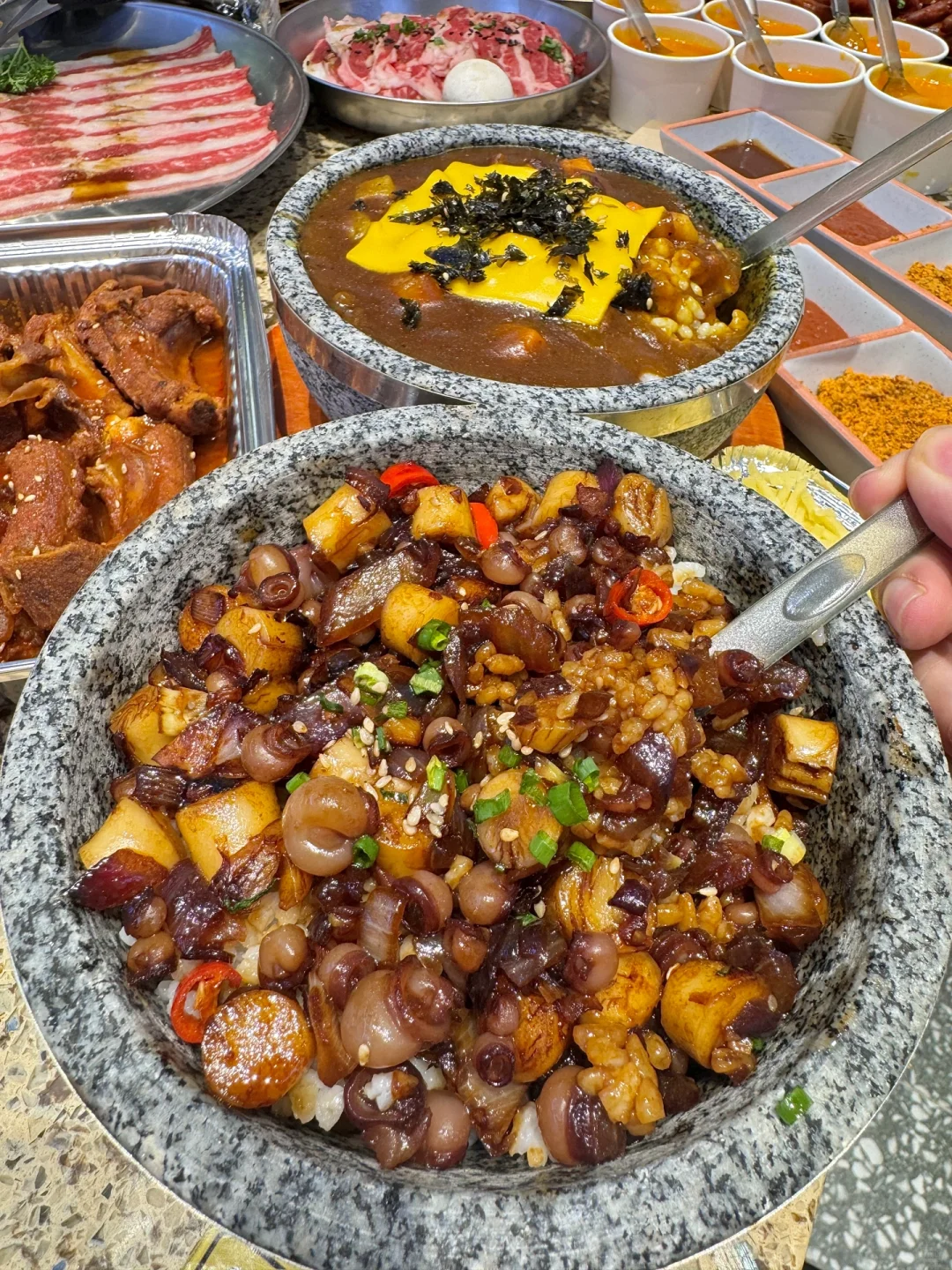 超级海肠捞饭!!汉南洞熔岩爆浆黑吐司!!首尔提拉米苏雪花冰!!釜山芝士咖喱饭…每一道都精致好吃😭😭 万家丽广场7楼!!叫:安三胖!!进门就仿佛来到首尔!!真的没失望好好吃啊!! 长沙同类型的店吃过5678家咯,这家无论是环境服务还是出品都没有对手了。很适合带上姐妹或对象约会!! 唯一的缺点:饭点要排队🥹建议早点去!!