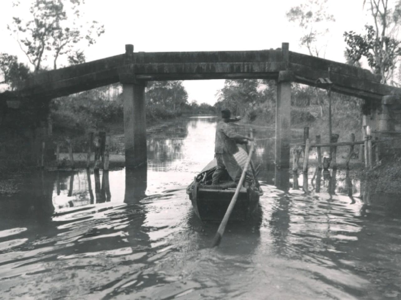 上世纪四十年代末,台湾,张学良软禁期间,打着赤脚身穿当地民族服装的赵四小姐。