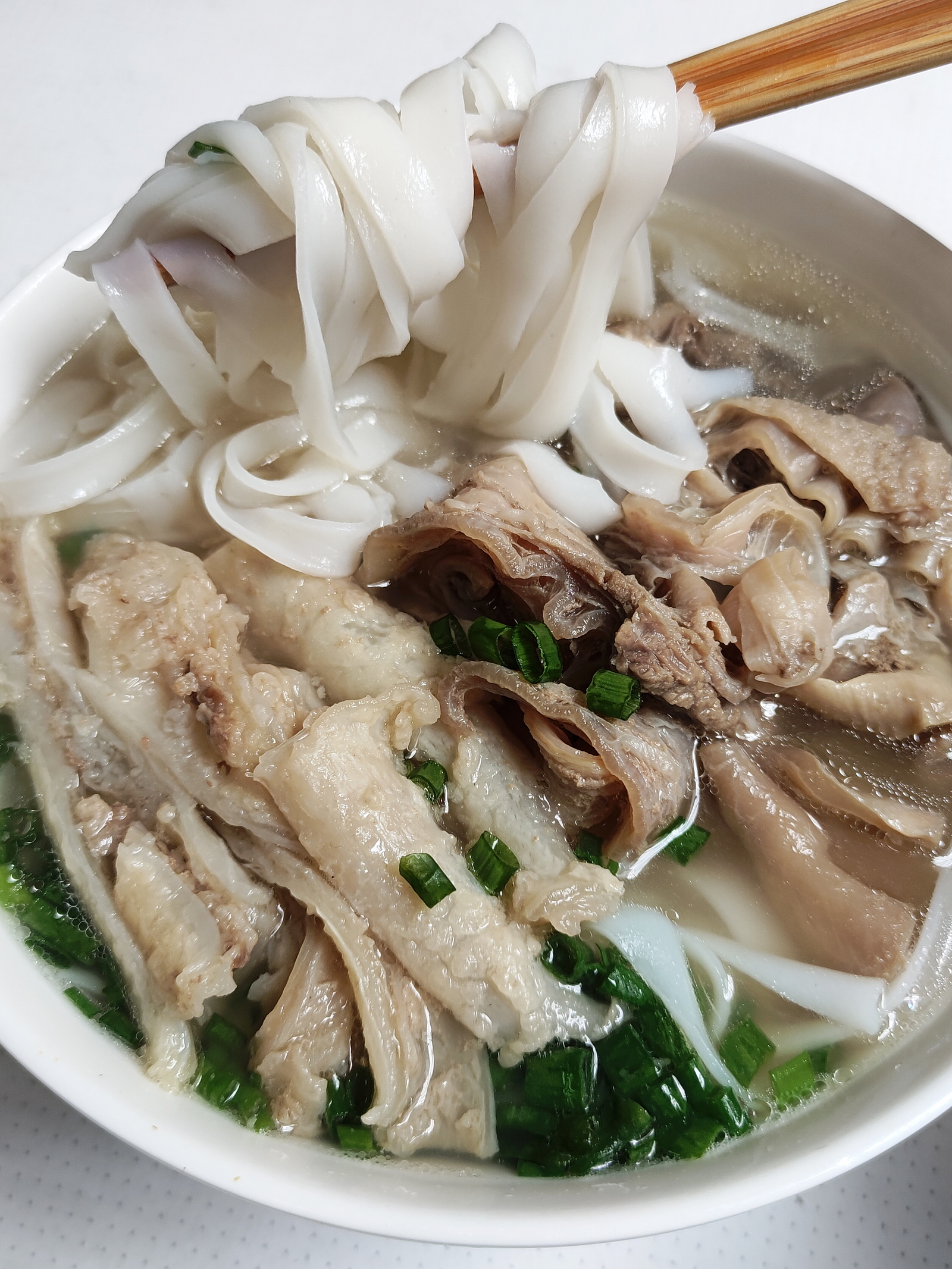 清汤腩河粉,这是最精华的部位,一级享受。因为牛腩在沙园买是26一斤,河粉4元,加上鸡汤底,一碗总成本成本约15元,很清淡,外面食肆估计找不到对应出品。遗憾就是云浮河粉店出品虽好但不稳定,今天河粉脆容易断,昨天的太软。老板说过因为要用机器,又坚持纯米浆,所以很难控制,另天气影响也大。