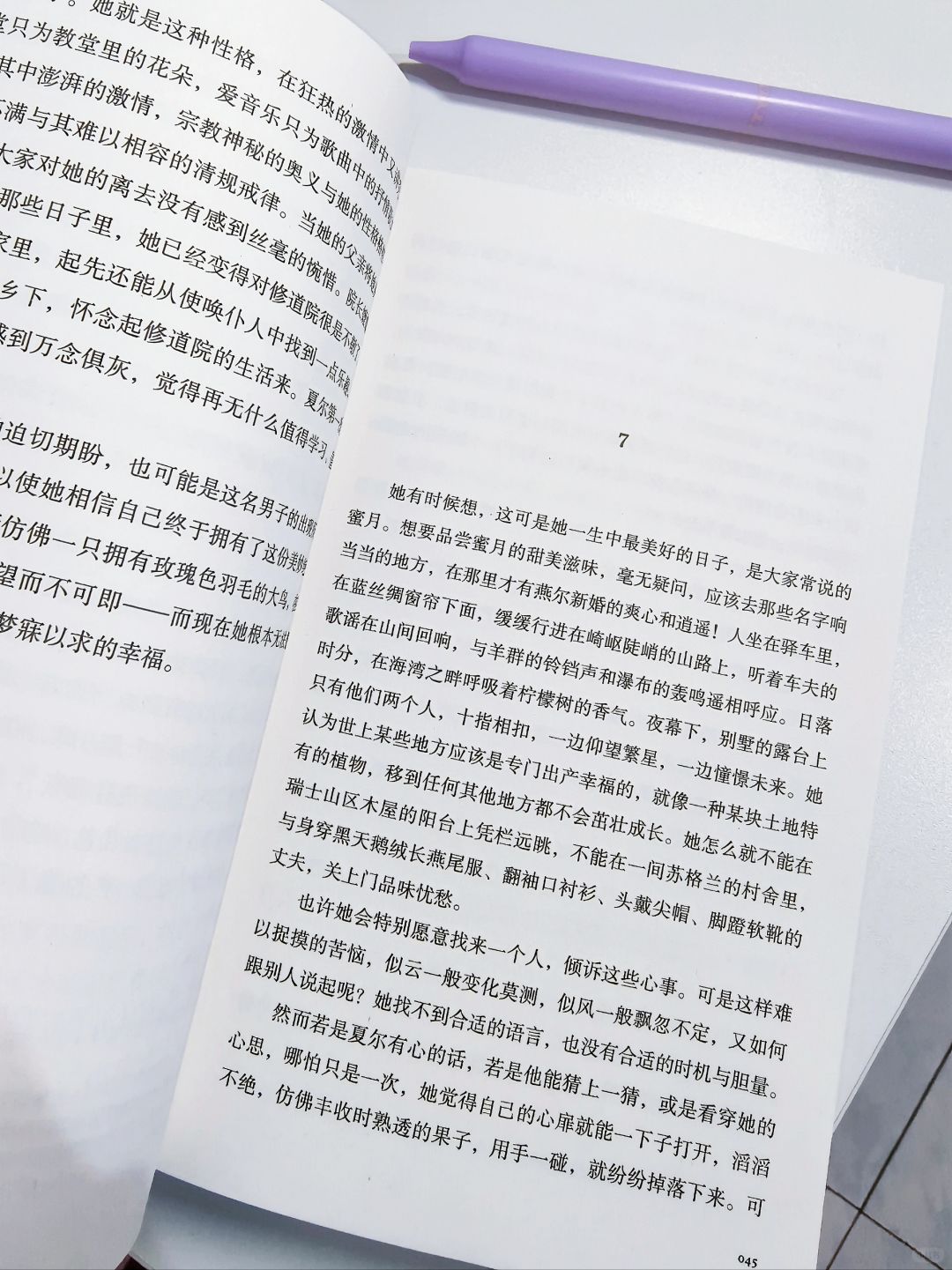《包法利夫人》 ~ 福楼拜 ~ 一本很经典很经典的书了,我也是二刷这本书了,这个版本 的包法利夫人还是很好读的,我觉得从翻译的角度上来说我更喜欢这一版。 ~ 故事讲述了爱玛,一个普通农家女孩,沉迷于上流社会生活,幻想着文学中的浪漫可以降临在自己的身上。原本与乡村医生可以过着安稳的生活,但由于她的沉迷,生活终究变成了一地散沙。为了满足自己的欲望,出轨、借高利贷,一步一步走向毁灭,最后也是欲望促使着爱玛结束生命,走向死亡。这本书的扉页设计我很喜欢,是一张床和被子,人的欲望大多是在床上开始的,一天的开始与结束,使自己不断走向深渊,万劫不复。 ~ 爱玛的经历也点醒无数的女孩们,在现在这个充满物欲的时代,我们都想过上更好的生活也在为其努力奋斗,但是在欲望面前,我们该如何克制自己欲望,理性对待是我们读完这本书学要思考的。爱玛的例子已经呈现在我们的面前,对于爱情,我们不该如此沉迷,那是我们生活的一部分而不是全部,更不能把欲望寄托于爱情,这样的结果最终会是人财两空。对于生活,平淡的生活是我们绝大多数人的常态,想要更好的生活需要自己的努力,而不是依靠别人,更不是依靠男人。 ~ 希望将来有一天女性不再用她的弱点去爱,而是用她的力量去爱。