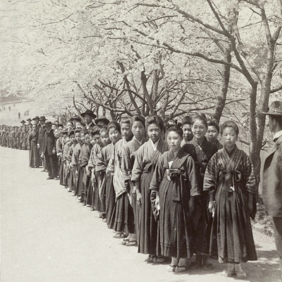 🌸在日本赏樱比较著名的地点有东京的上野公园、新宿御苑、京都从银阁寺开始的哲学小道、奈良吉野山以及横滨三池公园等,总之在日本可欣赏樱花的地方很多,整个岛国俨然是樱花的世界。老照片反映了1904年前后的日本樱花时节的人文景色。拍摄场地分别在日本东京皇宫公园周围护城河、新宿御苑、上野公园、向阳大道、石川寺、京都平野寺等地。