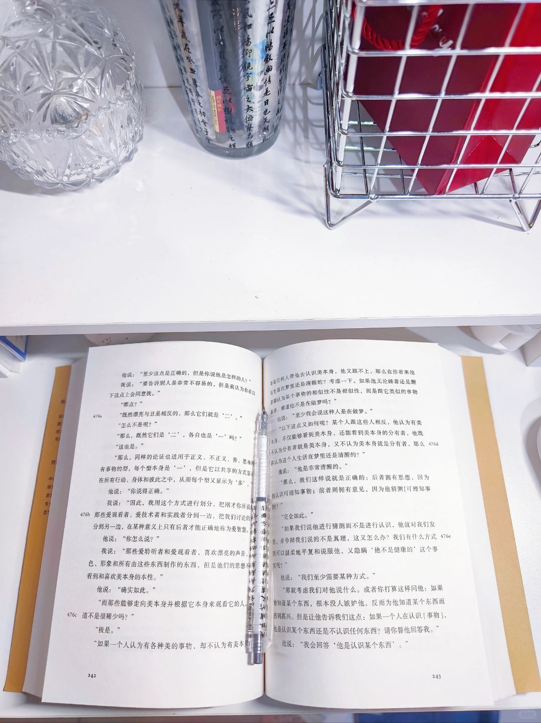 这本书采用对话的方式,一问一答,给我感觉很有条理性。原以为很难读懂的我,对于果麦的这个翻译版本却感觉很好理解。在每次的对谈中,都在感受着灵魂深处的思考与碰撞。柏拉图与苏格拉底这对师生在书中主要论述了正义与非正义,认为各善其职,做好自己分内的事就是正义。他们还认为正义至少在一个善的事物当中。在他们的思想里面,凡是会毁灭和败坏的东西都是饿的,凡是会保全有益的东西都是善的。他们的谈论很深刻,涉及身体健康灵魂。他们在描述每一个方面的时候都在渗透着他们独一无二的思想,也在传递着拥有他们思想构成理想国度的样子。就像罗翔老师说的那样。这本书带领我们走出浅薄,2000多年前的声音依旧在这个时代回响。