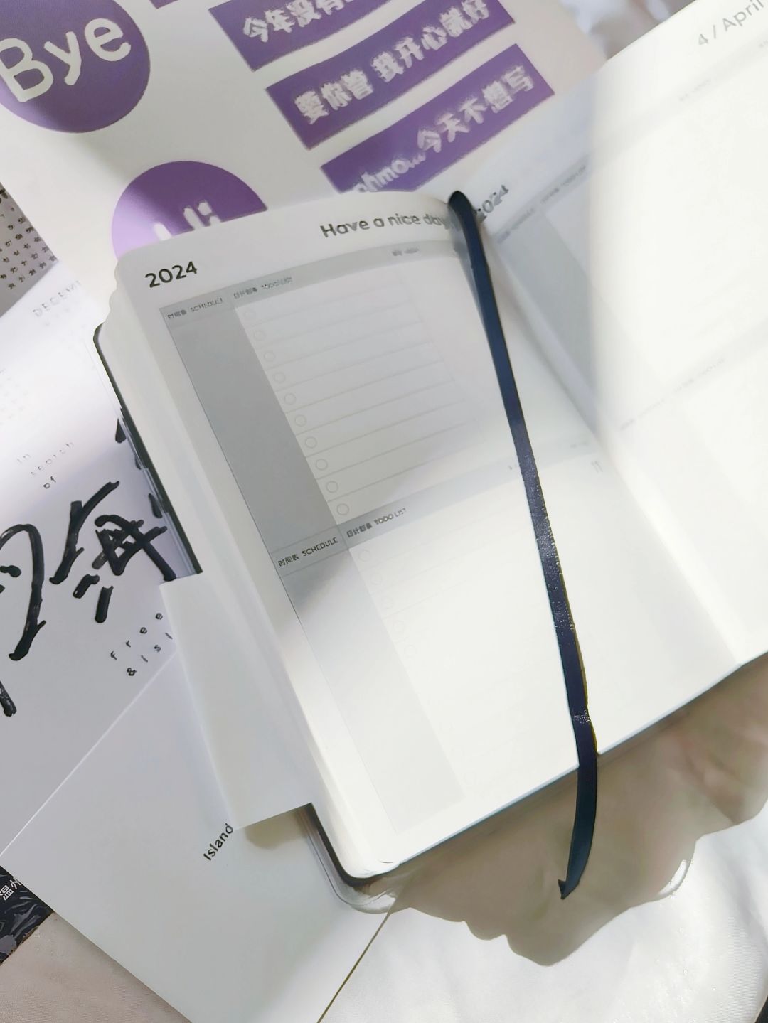 没想到吧!屿鱼家已经出了2024年的日程本了。这次的这个本子非常有质感,我选的是黑色的,显的很庄重但又不觉得老派! ~ 本子内容有很多,主要包括时间表 日计划表 备注三个部分,可以让我们合理规划自己的时间,完成高效的一天。还附带了很多的贴纸,也完全可以将它作为一个周账本就行使用。 ~ 我很喜欢腰封上的三句话: 你还年轻,别凑合过。 只有蓬勃野心,没有日月风情。 你要记住,你不是为别人而活,你是为自己而活。