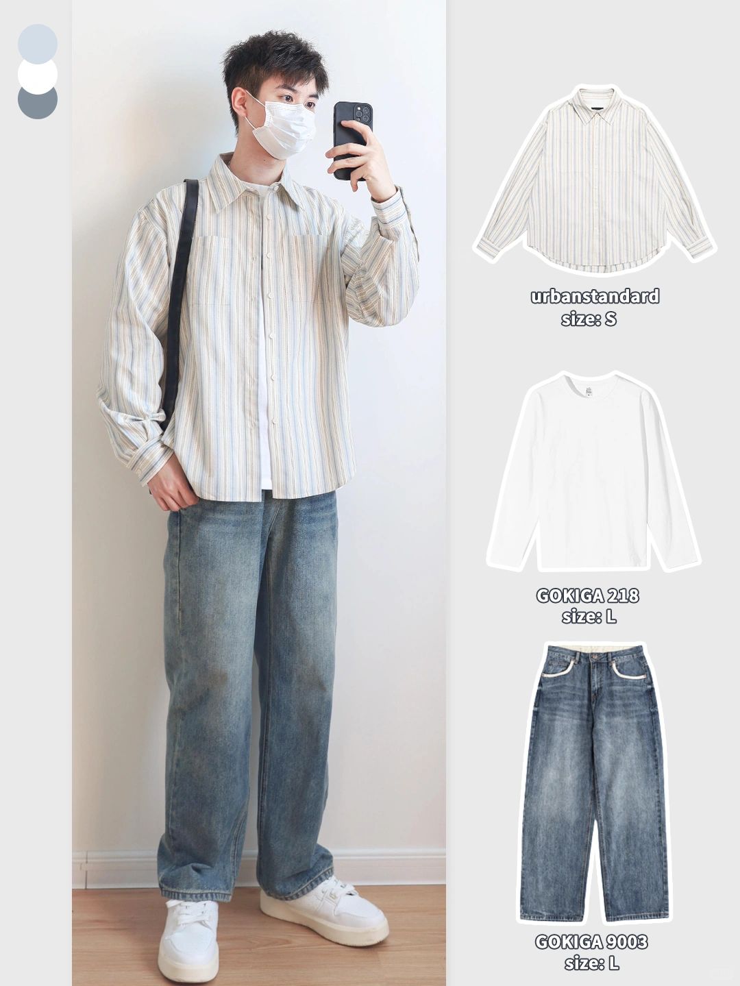 🔘浅蓝色条纹搭配复古牛仔裤,蓝色同色系给人一种干净明亮的印象!