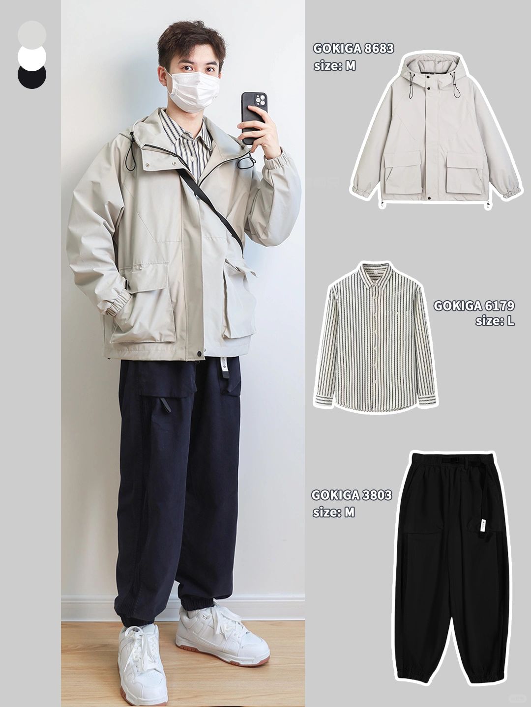 🔘浅灰冲锋衣搭配藏青工装裤,低饱和色系耐看不出错,适合户外出行穿!