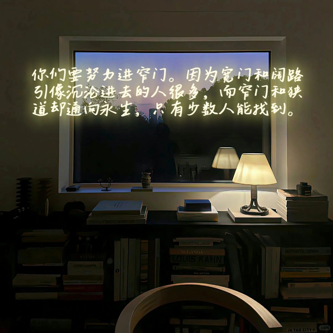 📝你们要努力进窄门,因为宽门和阔路引像沉沦进去的人很多,而在窄门和狭道却通向永生,只有少数人能找到。 📝简单亦是一种人生态度。删繁就简,贵在认真。 📝不管风吹浪打,胜似闲庭信步。 📝宠辱不惊,看庭前花开花落。去留无意,望天上云卷云舒。 📝恭维是带着鲜花的深渊,批评是防止你跌倒的拐杖。 📝红尘陌上独自行走,绿萝拂过衣襟,青云打湿诺言,山和水可以两两相望,日与月可以毫无瓜葛。