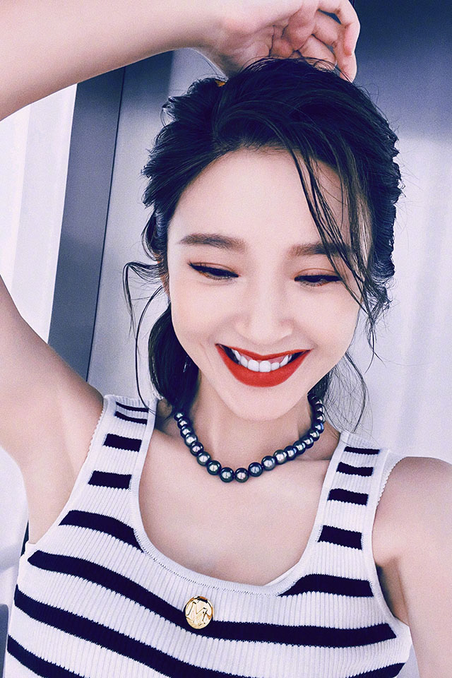刘亦菲把死亡玫粉穿出了定制款的感觉,这种颜色普通人穿上分分钟黑三度,她居然能穿出