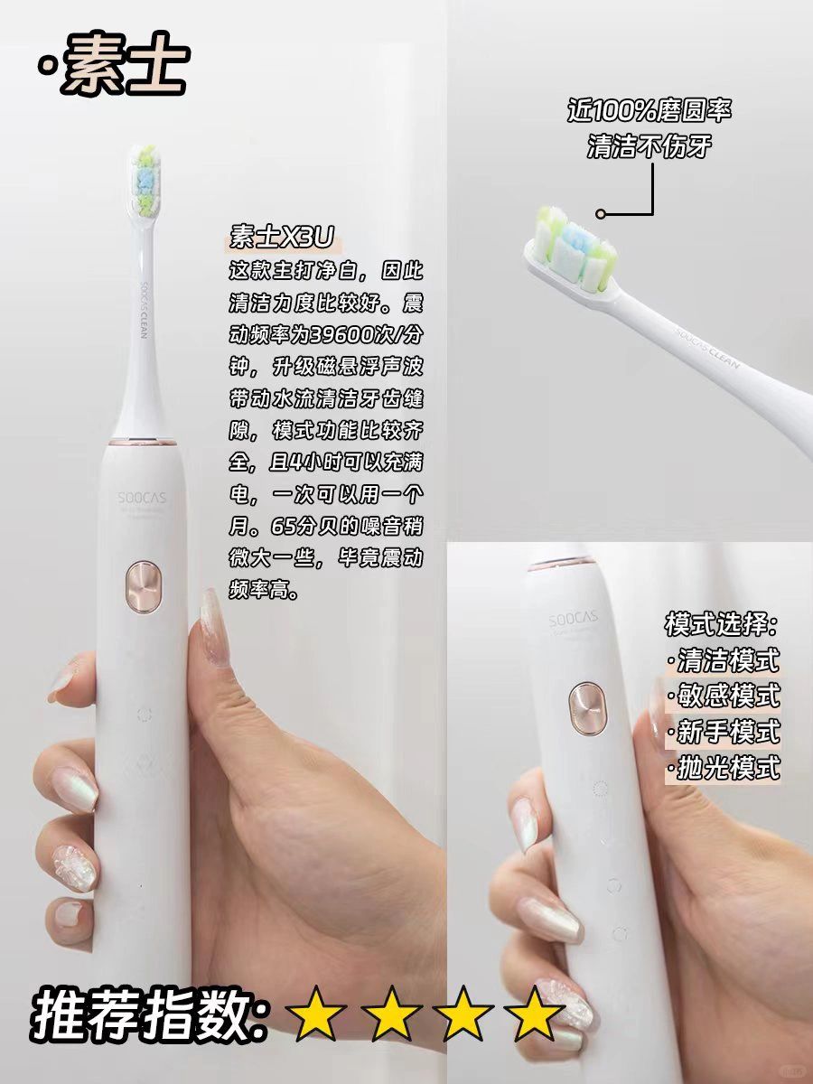一天刷两次的话,充一次电差不多可以管半年左右,强劲续航。噪音只有40分贝,不用担心吵到室友。