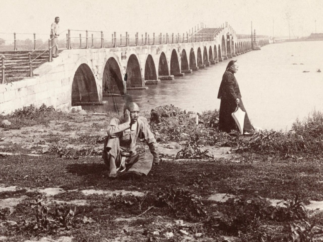 🍀图9、苏州宝带桥是中国现存古代桥梁中最长的一座多孔连栱石桥,有孔53个。始建唐元和十一年(816年),明正统十一年(1446年)重建,样式至今未变;老照片由Ricalton,James拍摄于1900年。