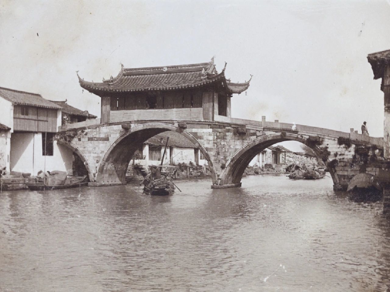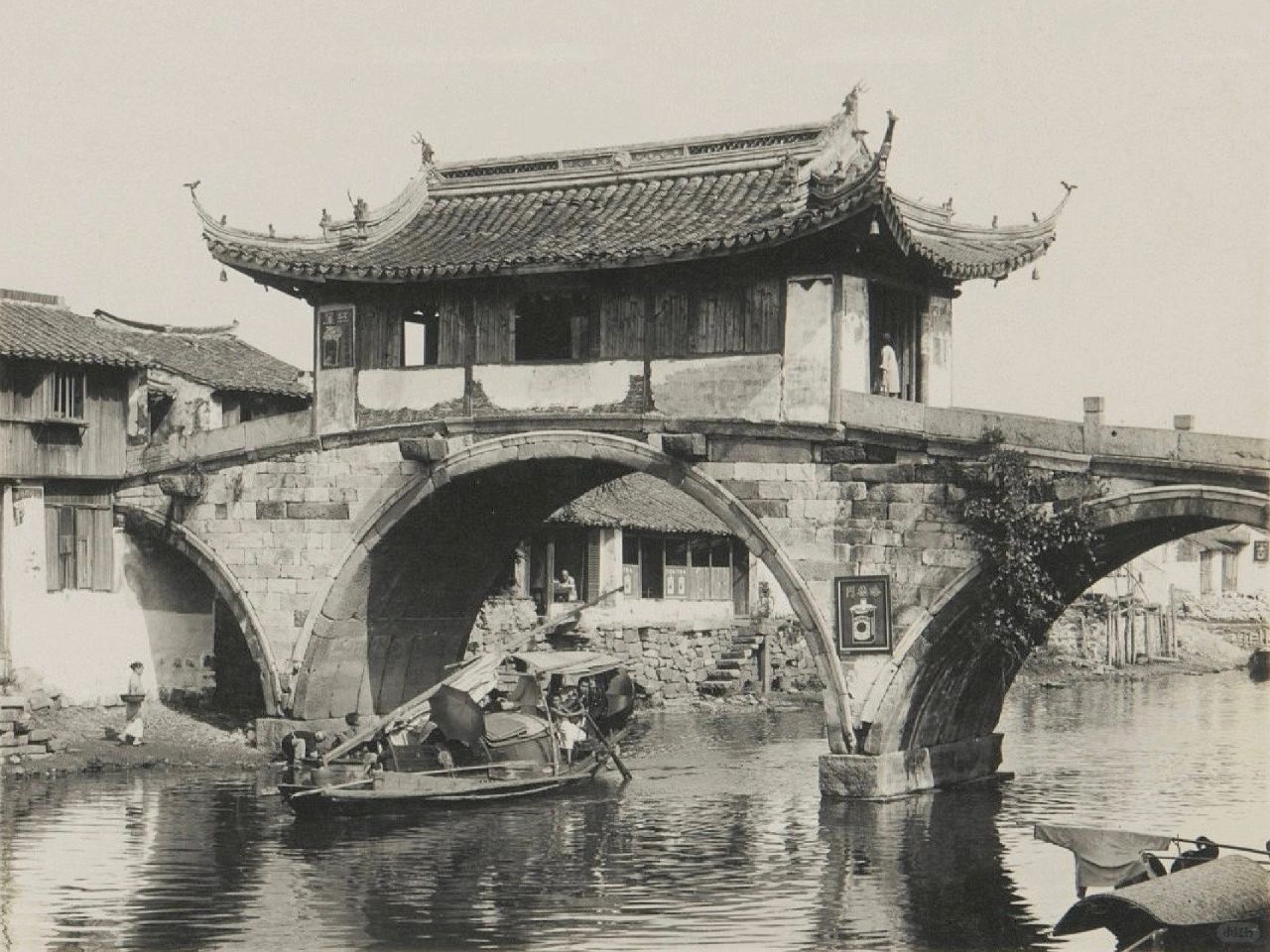 🍀图6、普济桥位于山塘街半塘,清乾隆四十九年建成。老照片拍摄于1910-1923年间。