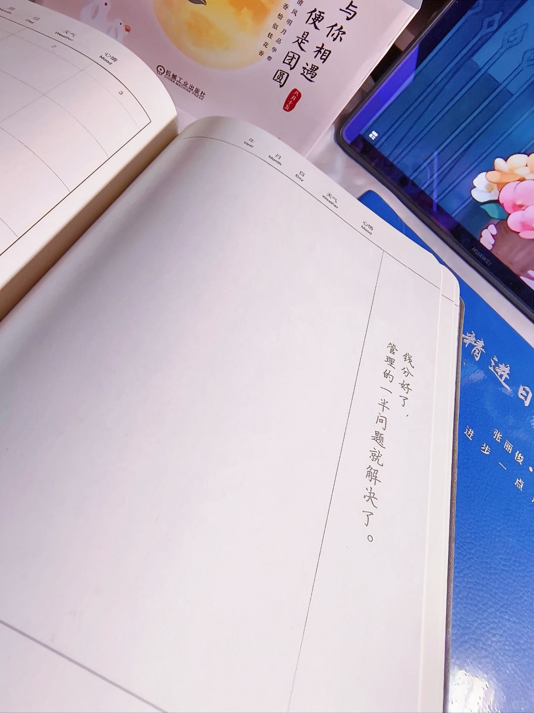 右边的空白页,我则是用来记录一些随笔,或者重要的怕忘记的事情或者我会写一些自己这一天的日记或者是感悟,也许也会在路上偶然看见的一句话记录下来。每个空白页都有张丽俊老师的给我们的一句管理感悟,简单且易懂。