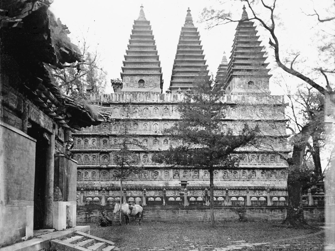 明永乐年间(1403—1424年),明成祖朱棣赐封西域高僧为“大国师”,为其在京城西关外,敕建了一座寺庙“真觉寺”。明成化九年(1473年),明宪宗成化皇帝在寺庙内又建了一座“真觉寺金刚宝座”。清乾隆十六年(1751年), 乾隆皇帝为其母崇庆太后六十大寿,修缮真觉寺。为避其父皇雍正皇帝胤禛讳,将寺庙名改为“正觉寺”。晚清时期,因五塔寺年久失修,逐渐衰败,真觉寺金刚宝座前后各存大殿一座;民国年间,五塔寺毁坏严重,塔内文物也多次被盗,寺庙地面建筑逐渐废弛坍塌,仅余金刚五塔宝座,俗称“五塔寺”。新中国成立后,多次对五塔寺进行修缮,并于1982年正式对外开放,现为北京石刻艺术博物馆。五塔寺老照片由约翰·汤姆逊(John Thomson)、Holton, Carter D、海达・莫理循(Morrison Hedda)、拉里贝、恩斯特·柏石曼(Boerschmann)等人拍摄于1871-1933年间。