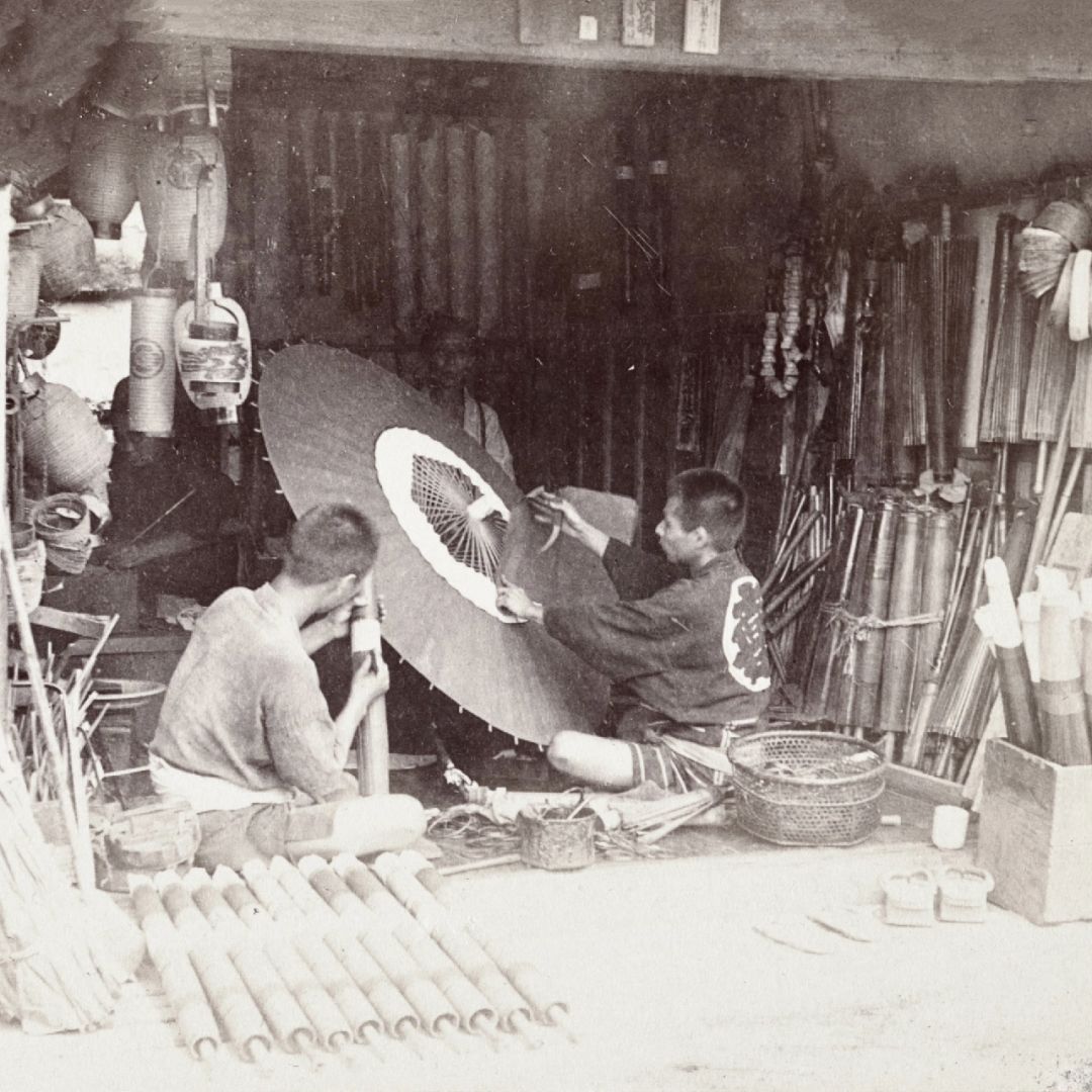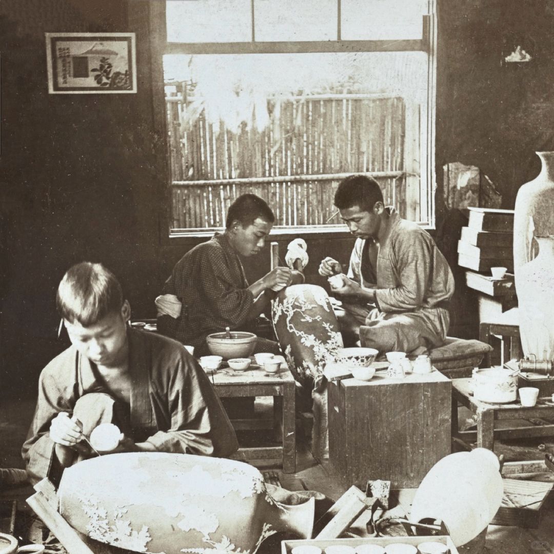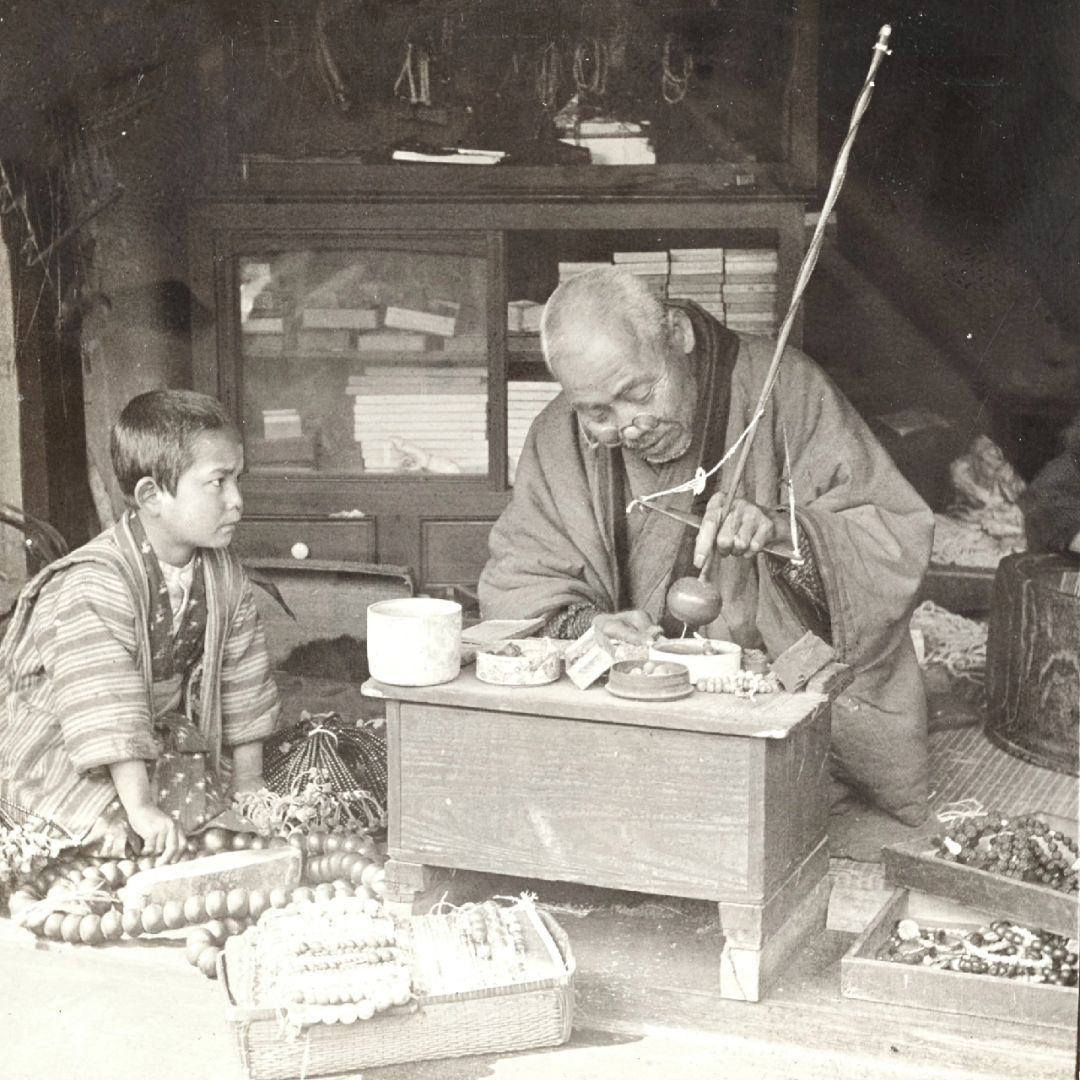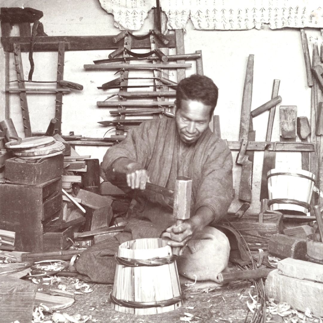 1993年,一所日本专门传授传统工艺技术的学校——“京都传统工艺大学校”诞生。80%的课程为实操且课桌即操作台,由一流的工艺师传授技艺,把世袭传家的传统手工艺与公共教育相结合,是京都传统工艺大学校的办学特色。专业涵盖了陶艺、木雕刻、佛像雕刻、木工艺、竹工艺、漆工艺、漆器莳绘工艺、金属工艺、和纸工艺、石雕刻、京手描友禅等专业。这组老照片源自于金士顿(Keystone View Company)公司创始人辛格利(B.L. Singley),拍摄于1900-1905年日本昭和及大正期间。