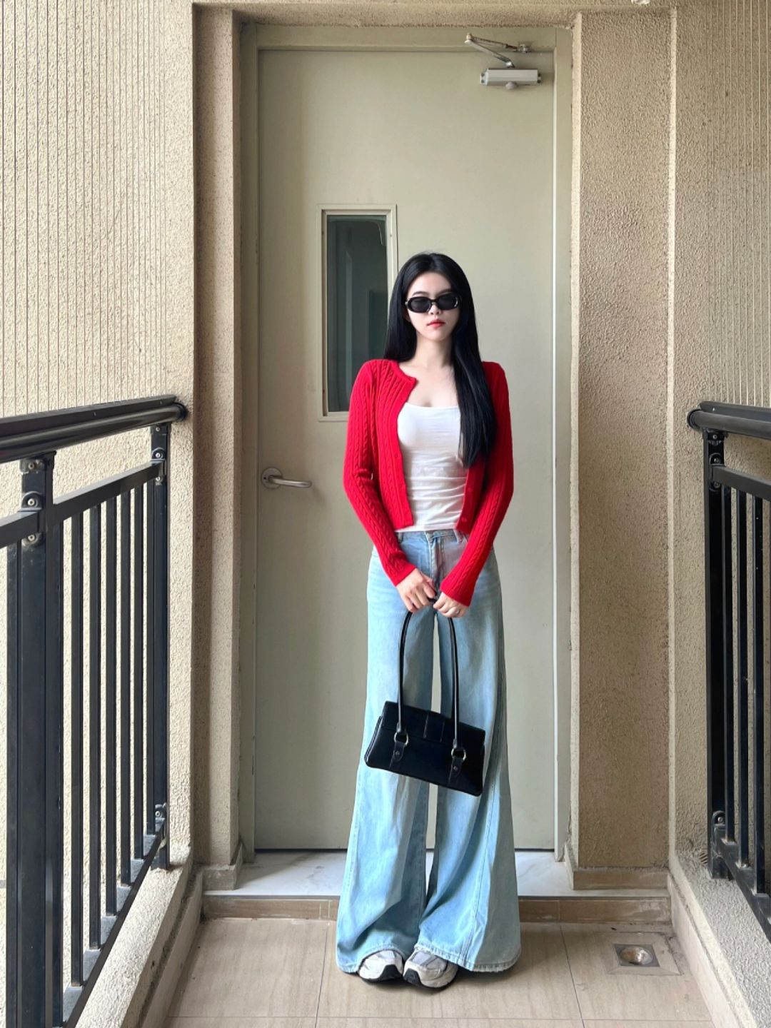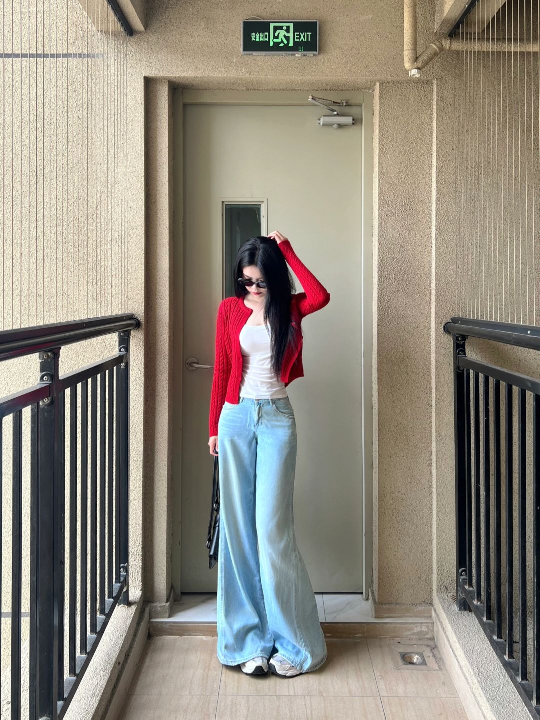 今天穿这样 期待春天 针织开衫 牛仔裤