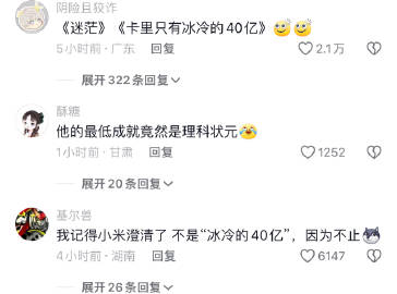春意见早 31 2024-04-02 08:10 雷军,简历最“普通”的一条是高考状元 时光的味道 回复 04-11 02:00 我呸,他算个毛线省高考状元,他那年连他们仙桃第一名都不是,只排个第五,吹毛线。 春意见早 回复 时光的味道 04-11 10:33 积点口德不好吗?