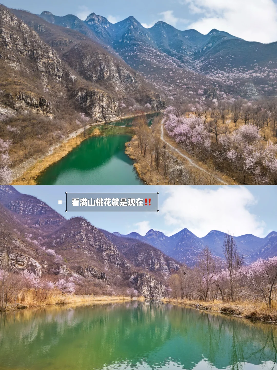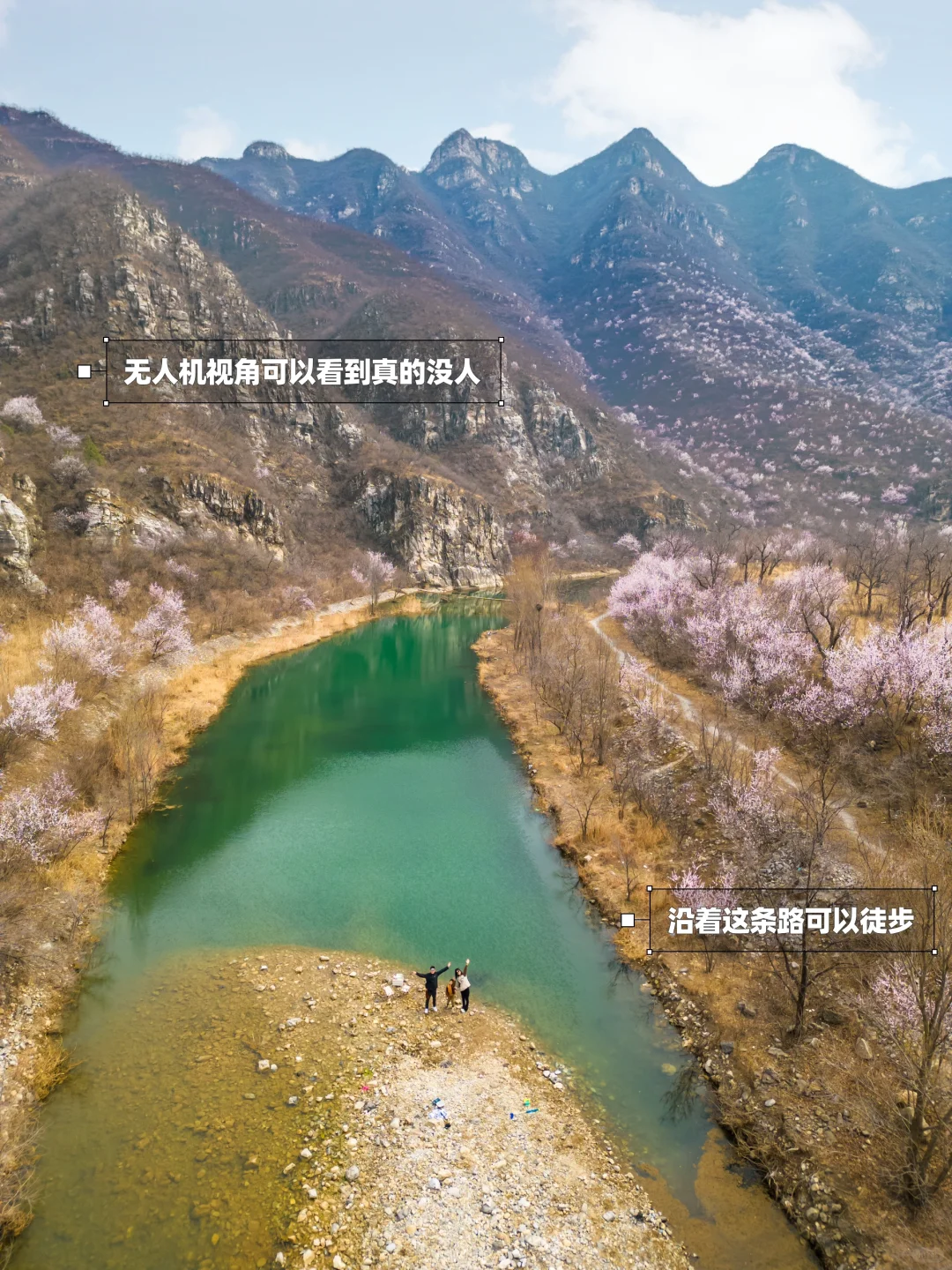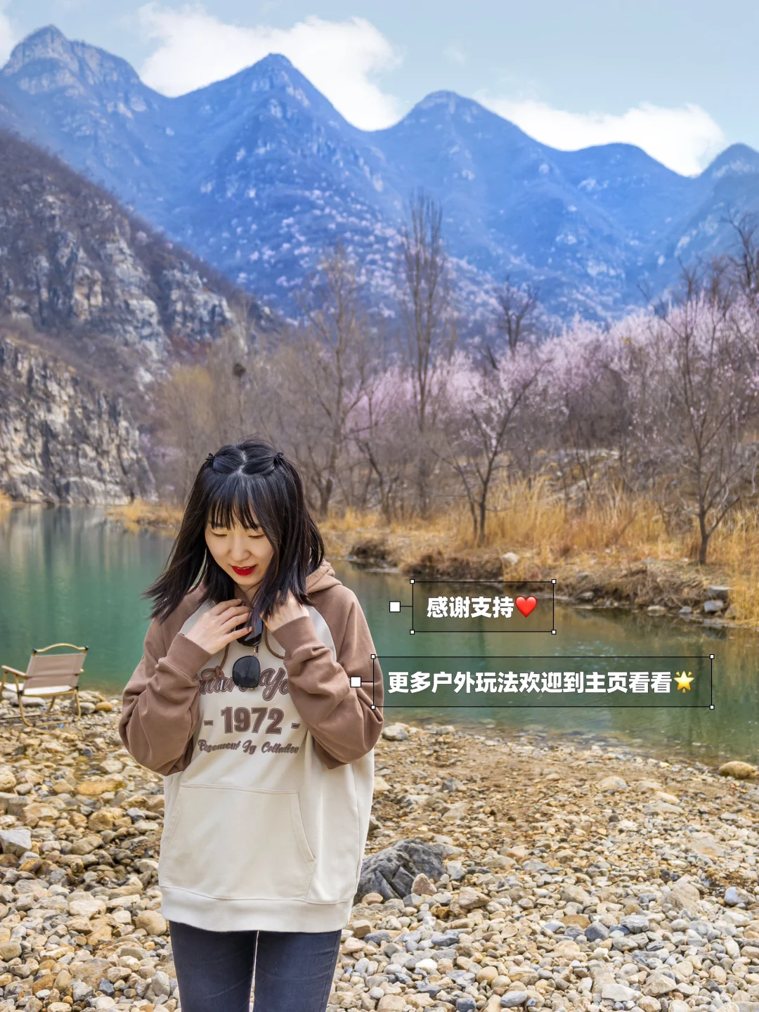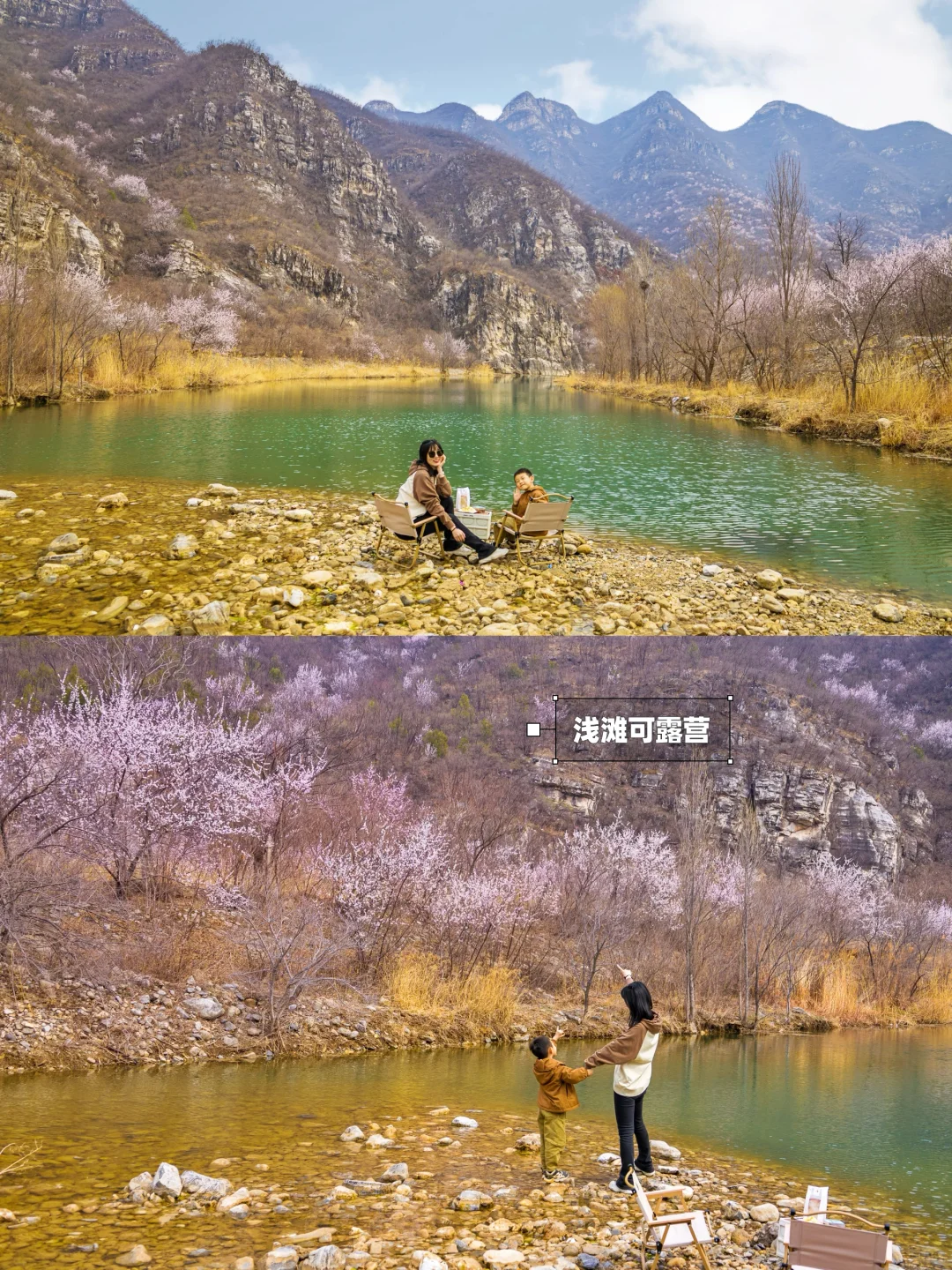 ʜ̆̈ᴇ̆̈ʟ̆̈ʟ̆̈ᴏ̆̈大家好🎀 这里是爱户外、爱遛娃的杨小兔儿🐰 . 这两周是山桃花的盛花期🌸 周末开车在昌平转悠又有惊喜‼️ 小兔儿发现了一个免费无人的宝藏露营地⛺️ 碧水长流💦山花漫漫🌸 这周末23度的好天气不能辜负啊🥰 来大自然里感受春天吧🌱 . 🌟关于这里🌟 ⛺️这里是群山中间的一片石头浅滩,可以露营、扎帐篷、扎天幕,野餐没问题,但是应该不能明火烧烤,附近看到了巡山的大妈在公路上溜达 . 💦水面很大、很深、水质很好、清可见底,颜色是碧绿碧绿的,真的很漂亮,但是浅滩处找了很久,没发现大面积的小鱼,偶尔一两条比较难抓,可能现在还在产卵季 . 🎣沿着水边有很多台钓的大哥,路亚在这里有点不好上鱼,我甩了一会儿,没有口,但是台钓我看到有上鱼的,很远没看清鱼种哈哈 . 🌸远山已经开满桃花了,两岸也有桃花树,沿河有一条土路,可以徒步赏桃花,现在应该是蕞好的时候,下周或者下下周应该桃花就会谢啦 . ♻️最后请宝子们一定要保护环境呀~带走120%的垃圾‼️ . ⚠️实用信息⚠️ 🚗距离市区1h,在昌平区六道河附近 ⛰️沿路有个观景台很好看☕️周末还有咖啡车可以看水库 🧭一直开看到彩色牌子的平台即可停车,右手有小路可以下到河堤 🗺️怕找不到可以管我要实景地图,知无不言 🆓野地儿免费无门票,停车也免费 . 祝大家玩儿的开心哦❤️ . 我是杨小兔儿🐰 四代土生土长的北京大妞儿😝 爱旅行、爱分享、擅长做实用攻略✏ 更多宝藏旅行好去处🌲欢迎去主页看看🏷 —