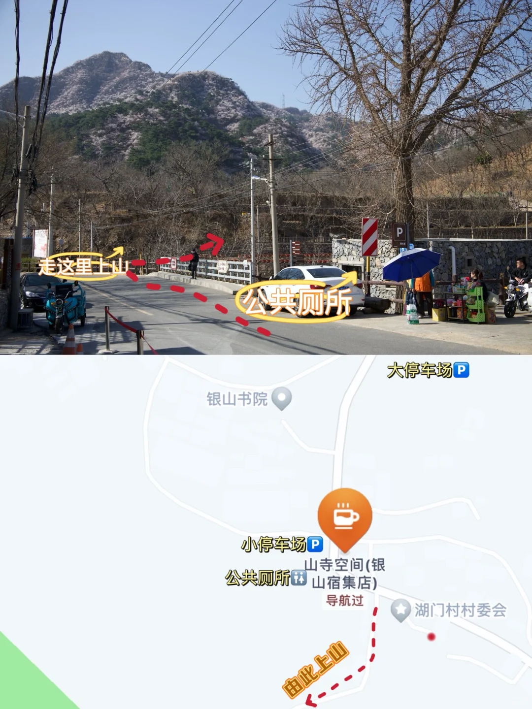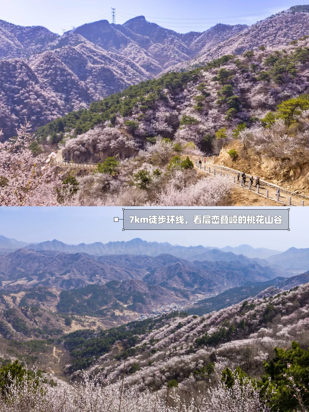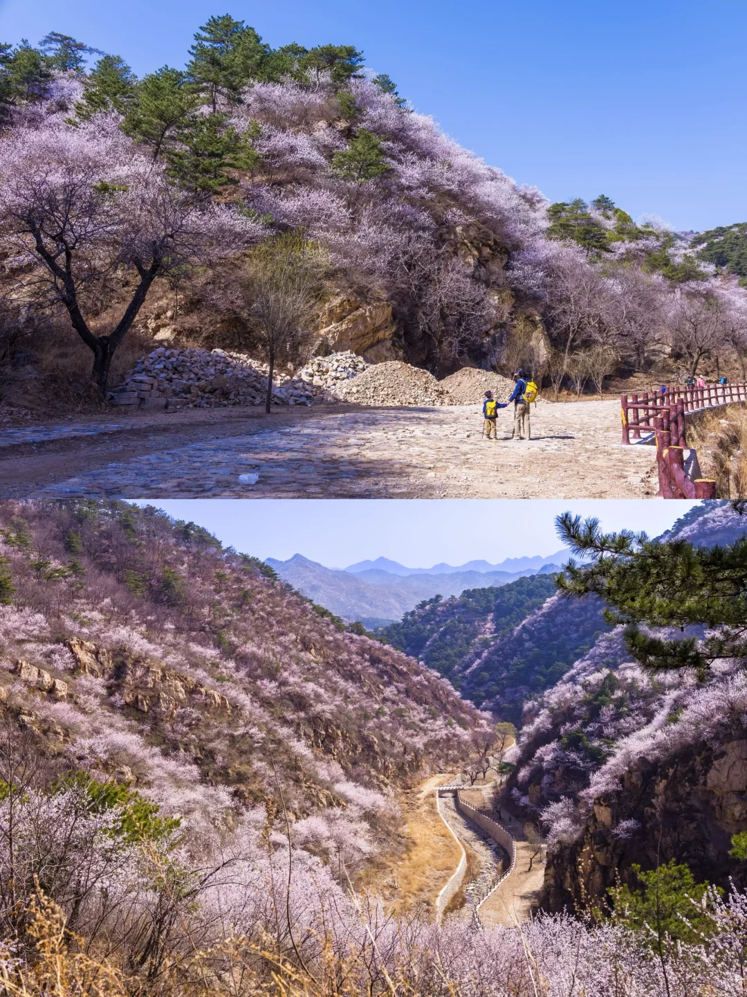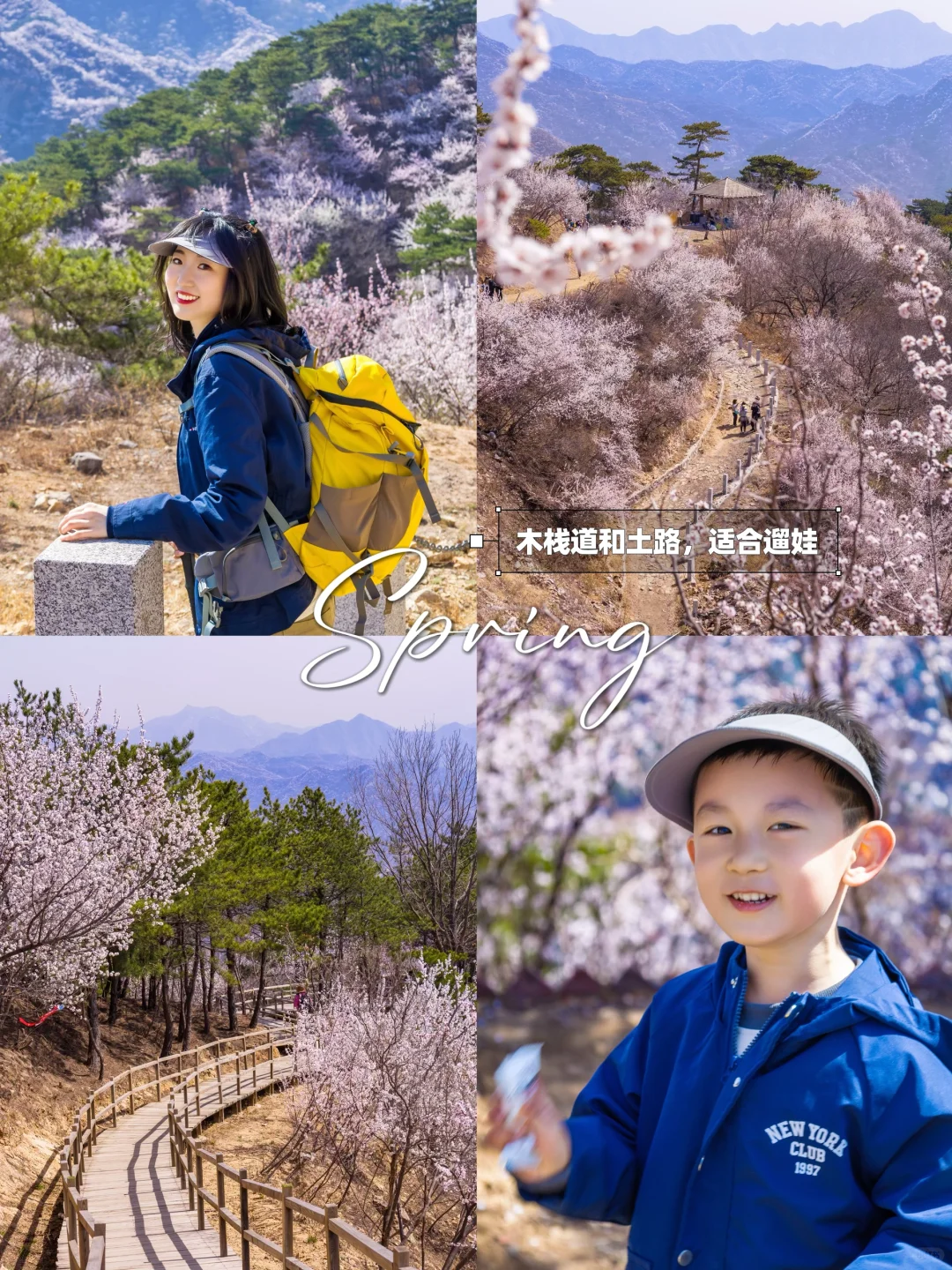 小兔儿又又又去徒步赏花啦🌸 今天分享的这条路线比西峪村更美更壮观✅ 是我今年心中赏花徒步Top1️⃣的路线‼ 免费无门票🆓适合遛娃👶🏻宠物友好🐶 趁着清明假期快去大自然里撒欢吧🍃 . ☀拍摄日期:2024.4.1 🌸现在山桃花已进入盛开期,喜欢的抓紧冲 🗺老规矩,攻略路线已给大家整理好,直接拿走抄作业‼ . 🌈昌平湖门村栈道 ⏰全天开放💰无门票🅿️免费停车 🧭导航山寺空间(银山宿集)店,到了导航点左侧有个空地可以停5-6辆车,如果停满继续行驶100米,右侧有大停车场可停30-40辆车 . 👟路线信息👟 ✔️7Km小环线,爬升388米,带5岁男娃边玩边走3.5小时 ✔️土坡、碎石路、木栈道相间,难度小、坡度缓 ✔️沿途有观景台、垃圾桶,山下和路线中各有一处卫生间 . ⚠️徒步攻略⚠️ ☀️建议上午出发走顺时针路线,拍照不逆光,背向登山不晒脸 1️⃣从停车场向南走到公共卫生间前行50米右转即可上山 2️⃣沿路只有一条登山道,部分岔口是观景台,拍照完回到主路继续走,具体可跟随6只脚轨迹 3️⃣蕞后从下到西湖村回到停车场 🗺️入口处的实景照片和6只脚轨迹如图,找不到可以随时问我 . 👉🏻这个地方一共有3️⃣条徒步路线,10km可以走到银山塔林景区,还有3.5km的小环线,都可以欣赏到满山桃花的盛况,小兔儿下一篇笔记会发📝 . 💡温馨提示💡 ▪️周末人多,建议早到,尽量10点之前好停车 ▪️全程无补给,需要自己带好全部的吃喝,水量1人1L起 ▪️山上无遮挡阳光充足,有山风,做好防晒、防风的准备 ▪️可飞无人机,山顶风景很好,用相机可以拍到同款景色 ▪️村口有一家桃花岛山庄,农家乐不贵,可以下山吃午饭 . 我是杨小兔儿🐰 四代土生土长的北京大妞儿😝 爱旅行、爱分享、擅长做实用攻略✏ 更多宝藏旅行好去处🌲欢迎去主页看看🏷 -