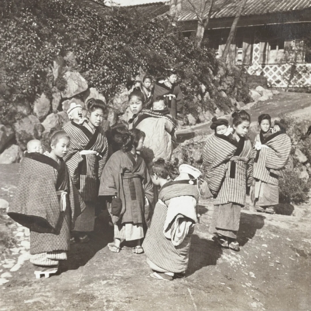 🍀图17、18,带娃的年轻母亲。日本曾经有过一种类似走婚式的习俗“夜爬”,即日本古代为刺激人口生育,男人可以夜间爬到女人房间进行“男欢女爱”。导致很多年轻母亲出现。这种习俗在1938年被日本政府废止。