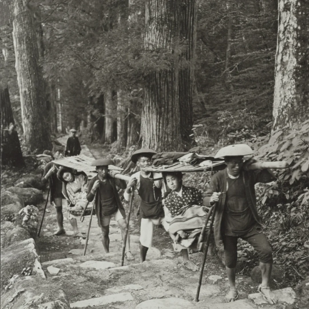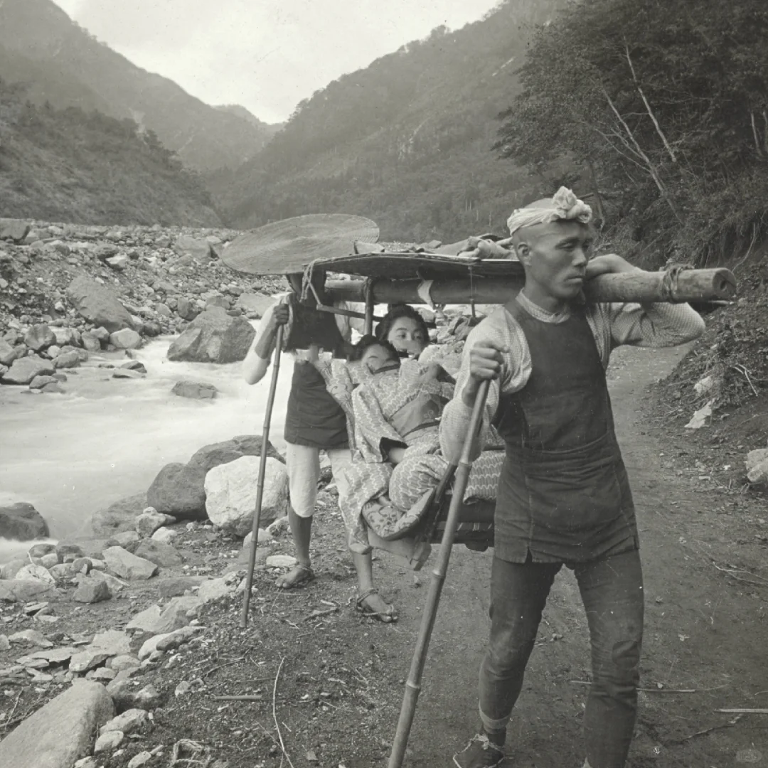 🍀图15、1903年,在日光市山中乘轿旅游。