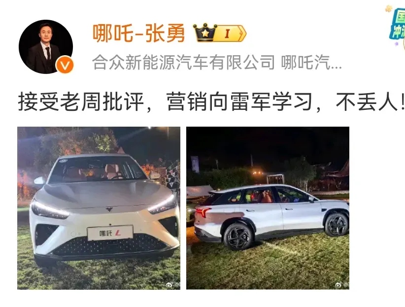 哪吒汽车张勇向雷军学习营销,学了一个寂寞。 哪吒汽车背后的大股东周鸿祎,最近批评了哪吒,说哪吒产品做的不错,就是不会营销,没有把消费者想知道的东西告诉消费者,应该向小米学习。 随后哪吒汽车CEO张勇发文称接受老周批评,营销向雷军学习,不丢人! 结果评论区炸锅了,说哪吒学了个寂寞,网友这么嘲讽,是因为张勇这个配图有严重问题,这不就是用手机随便拍照吗,好好的一款车,整成这样,消费者哪里有购买的欲望。 看看雷军等小米高管,在介绍产品时,配图或者视频,都是团队精心处理过的,看起来非常高端,非常精致。 看来哪吒真的不懂营销,更不懂雷军的营销。