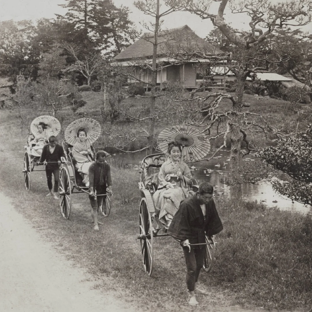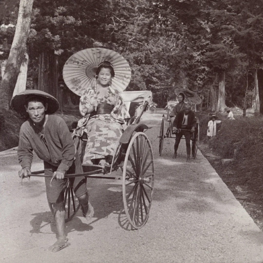 🍀图1-6,日本的人力车是日本女性出游出行的主要代步工具,一直到现在,在东京街头或者京都岚山等旅游景点都还能看到类似穿着打扮的车夫。