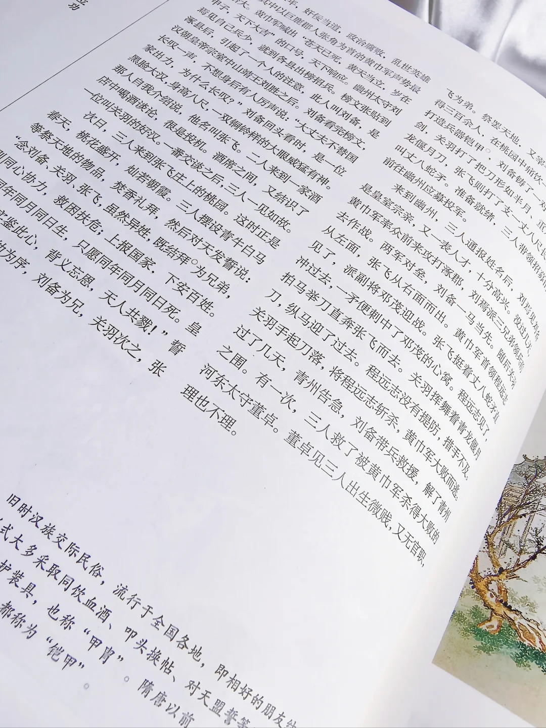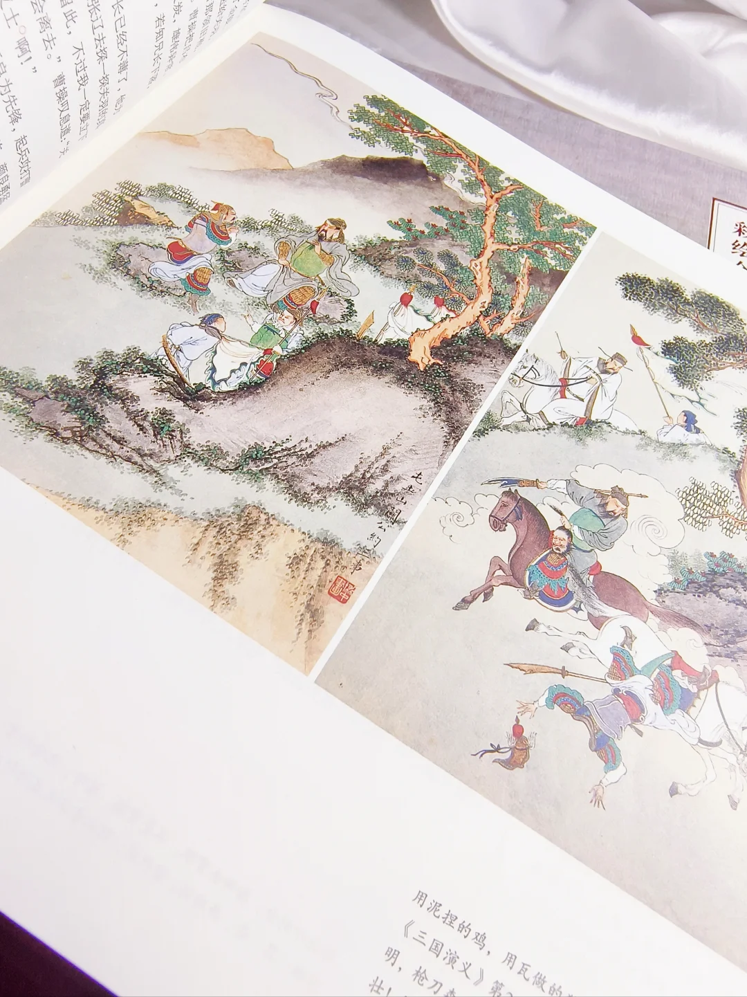 书脊包的布边都是纯手工的,封面为冰白珠光美纹,书脊为软烟罗棉织品,锁线精装。内页为彩绘设计,基本每页都是图文搭配,还有名家点评。图中的人物刻画的很细致,神情,神态能够很好的将我们带入进去。四大名著的故事内容,我就不这里过多的叙述啦,大家已经熟记于心了!