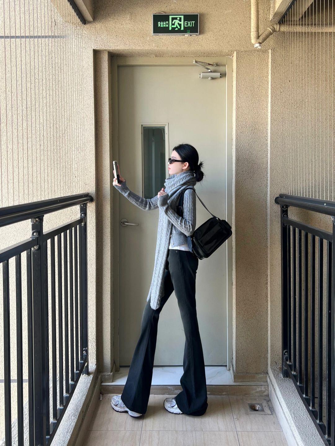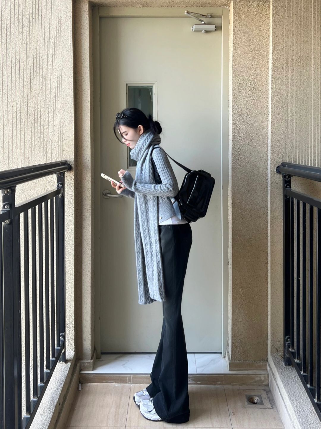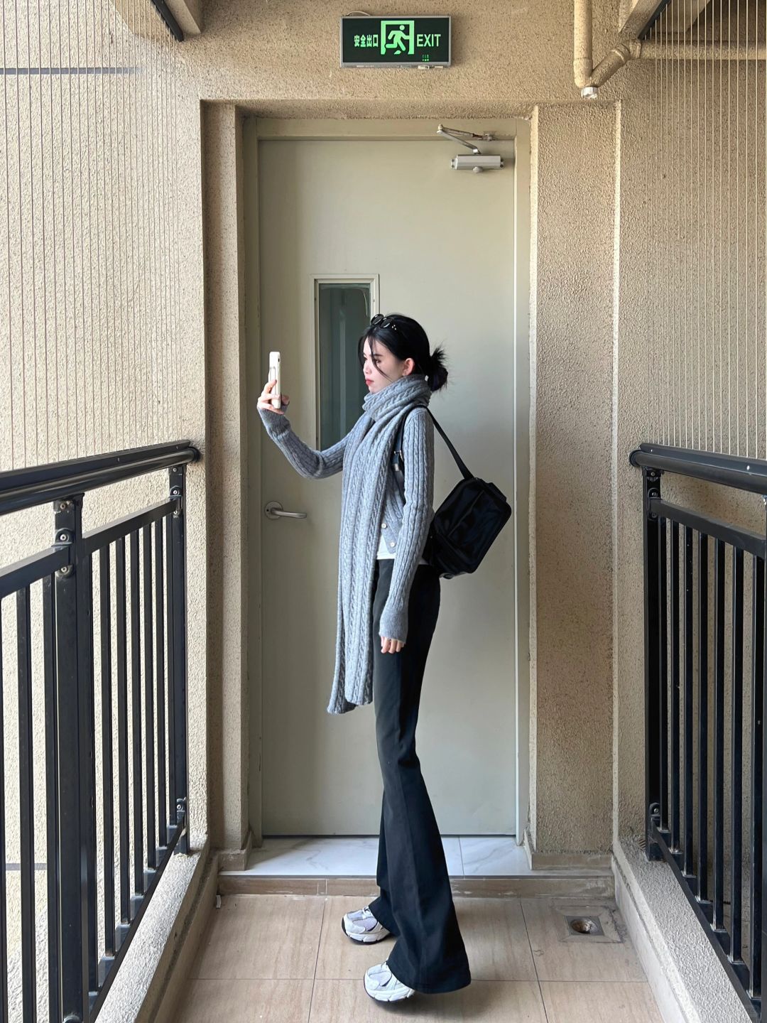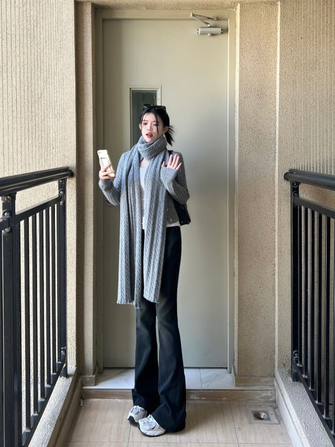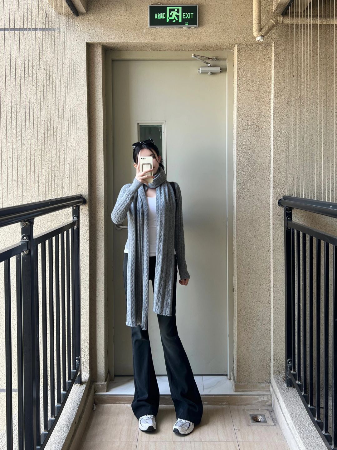 日常 显瘦牛仔裤 针织开衫 围巾这样搭 大衣内搭 通勤穿搭