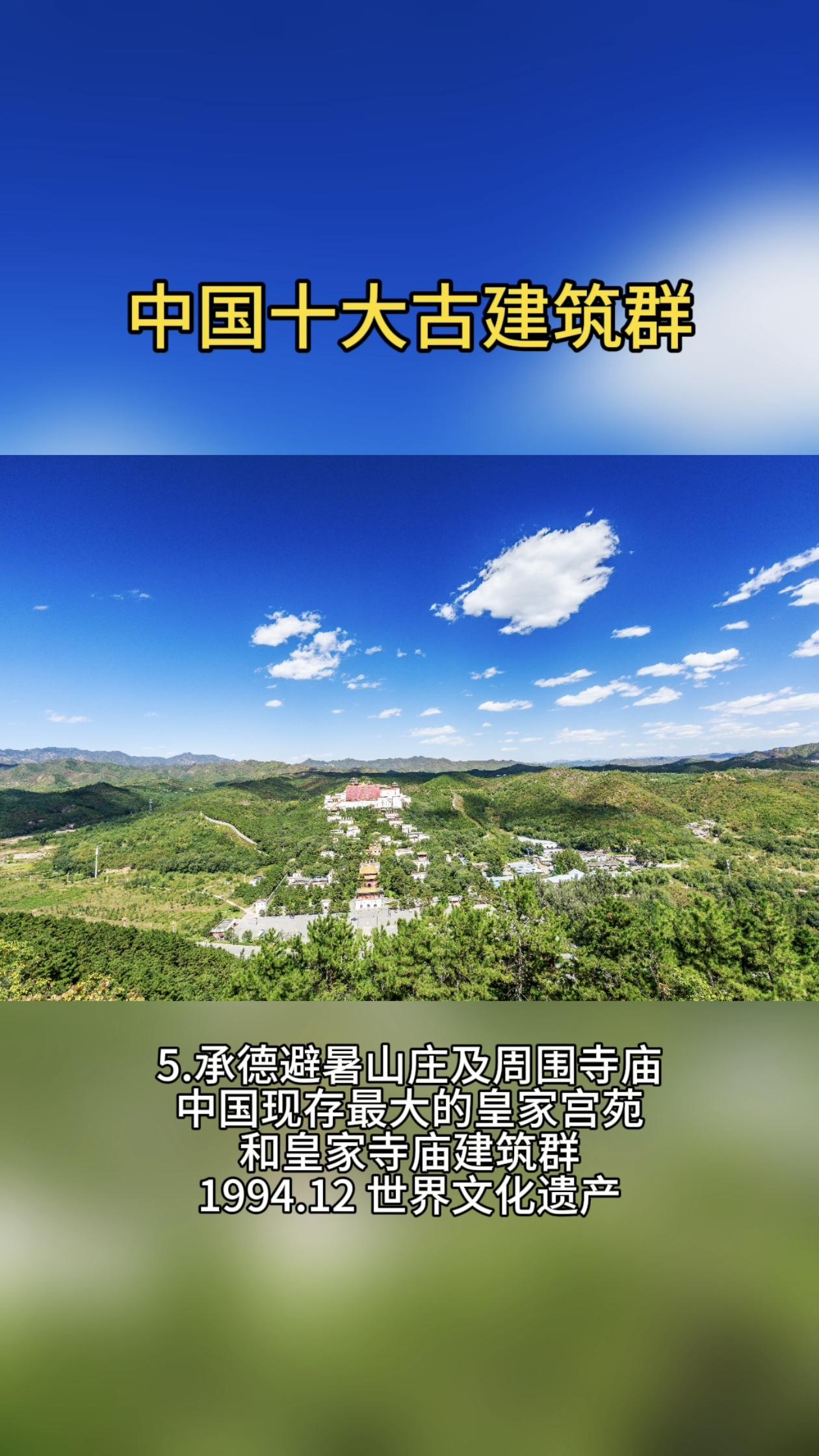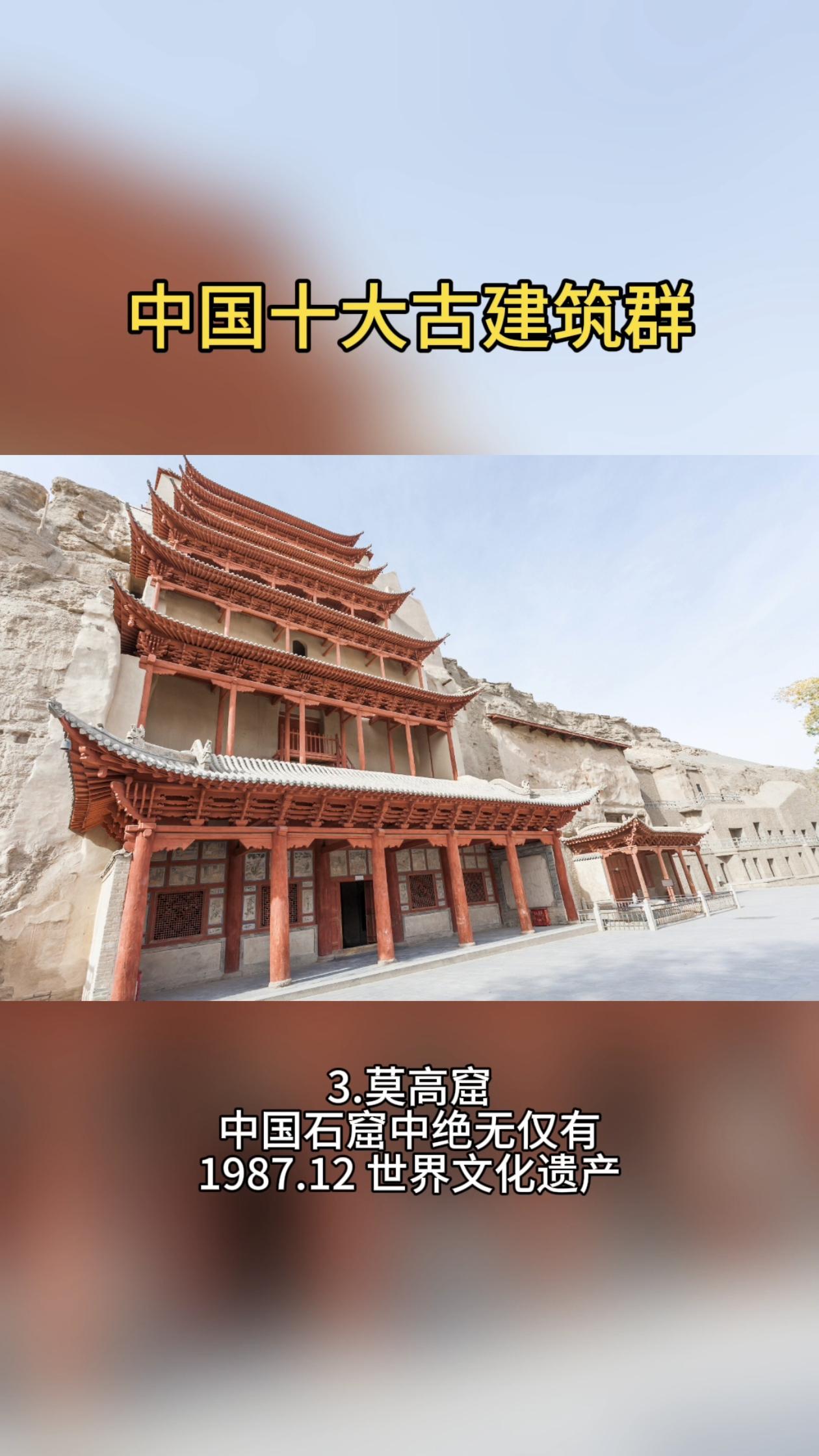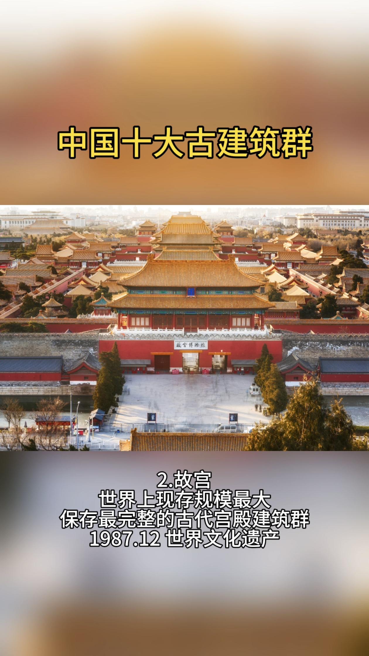 中国十大古建筑群。中国古建筑遍布全国各处,历史悠久,各具特色。其中山西现存最多。万里长城,是人类建筑史上的奇迹;现存的高达67.1米的山西应县佛宫寺木塔,是世界现存最高的木结构建筑;北京明、清两代的故宫,则是世界上现存规模最大、建筑衍生精美、保存完整的大规模建筑群。此处总结的十大古建筑群包括长城、故宫、莫高窟、布达拉宫、承德避暑山庄及周围寺庙、曲阜三孔、武当山古建筑群、丽江古城、平遥古城、苏州古典园林,各具独特价值。这些是最早被纳入世界文化遗产的中国古建筑群之一(底图/全景视觉,会员已授权)