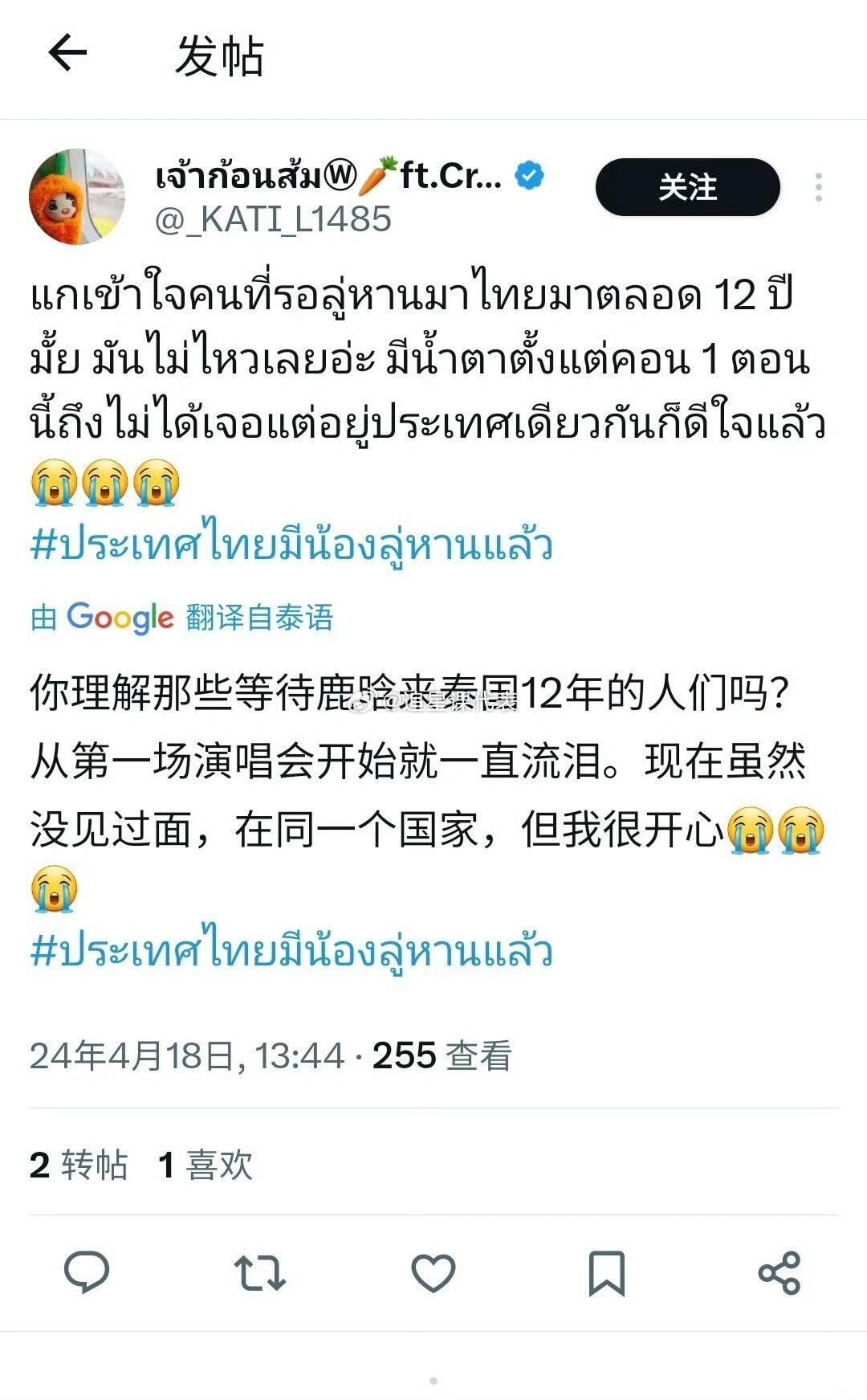 #鹿晗泰国# 不是12天不是12个月是12年啊,泰国粉丝也蛮长情的,这次鹿晗飞泰国也算是圆了十年前那场梦吧[悲伤]