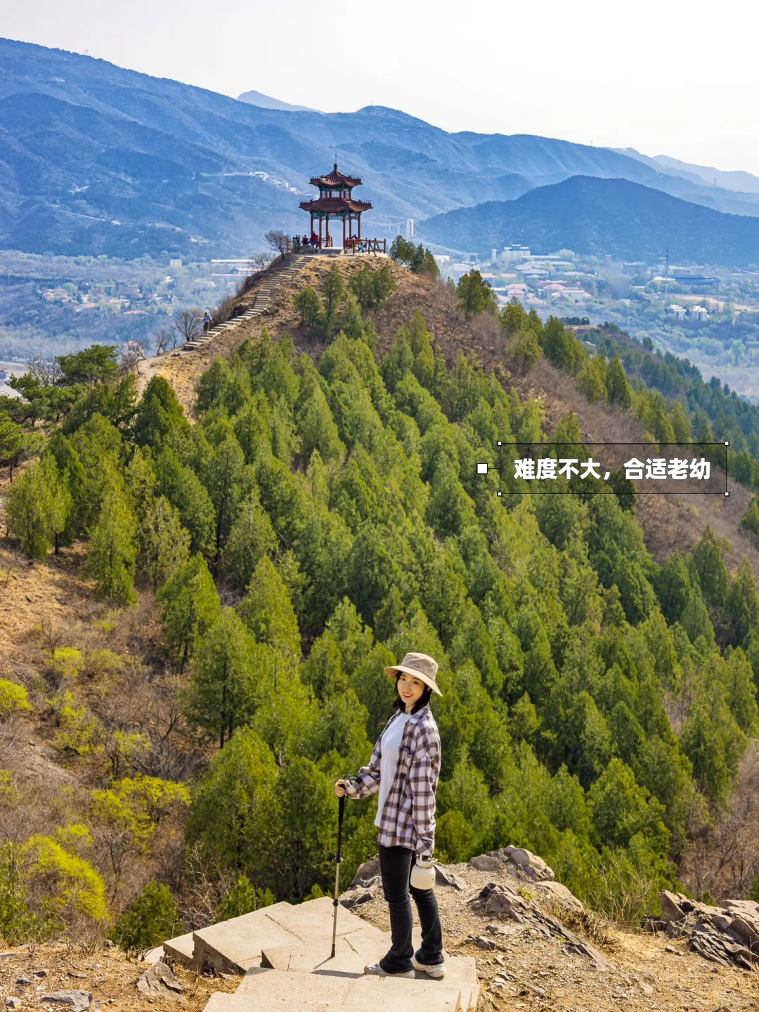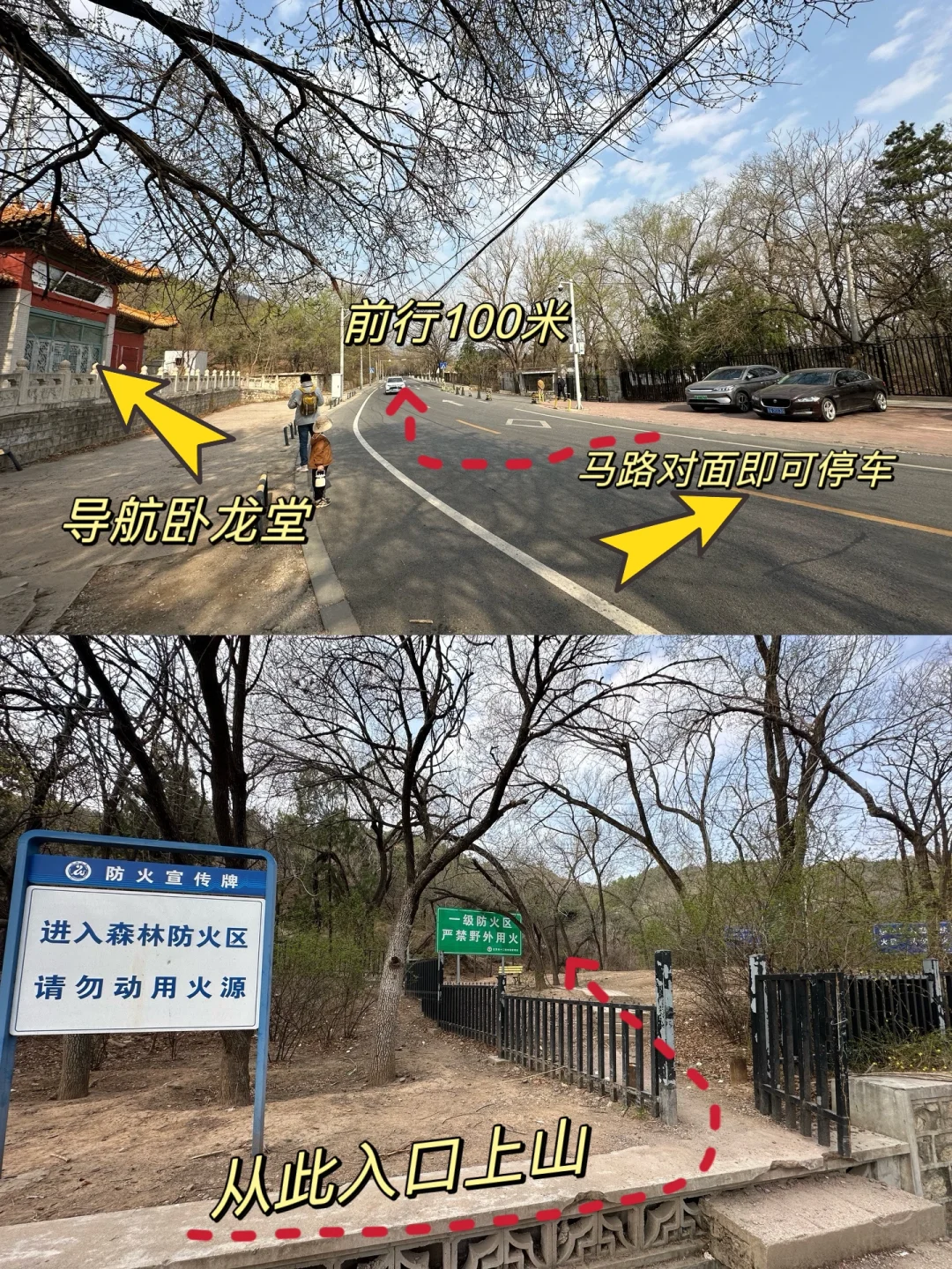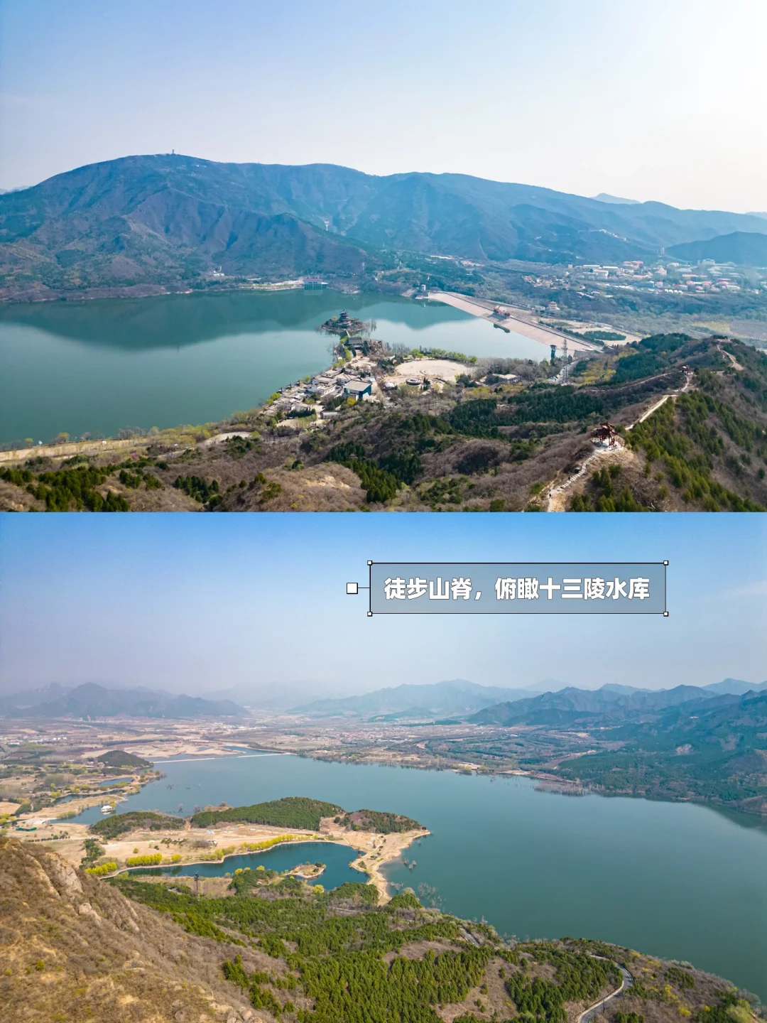 ʜ̆̈ᴇ̆̈ʟ̆̈ʟ̆̈ᴏ̆̈大家好🎀 这里是爱户外、爱遛娃的杨小兔儿🐰 . 春季户外正当时🌿如果你想去户外看看山河美景,但又不想费太多体力,可以走走这条适合低幼全家出行的徒步路线‼️走在山脊上,俯瞰十三陵水库,距离近,还免费~快来看看吧‼️ . 🌟推荐理由🌟 ✔️开车40分钟即达,公交也可直达 ✔️俯瞰十三陵水库、九龙游乐园和远山 ✔️两条线路难度适合不同人群 ✔️20分钟快速登顶,不费体力适合全家 . 🌈昌平十三陵水库登山步道 🧭自驾导航卧龙堂,对面即是停车场,停好车前行(向西)20米,即可看到登山入口 🚌公交车在“朝凤庵站”下车 ‼️注意‼️不要再导航中石化会议中心了,那里把门封住了,影响人家办公现在不让上了 🗺️老规矩,路线图和实景地图都给大家画好了,直接抄作业 . 2️⃣条徒步路线攻略 🟡短线:往返1.8km,用时1h 👉🏻从小门往上走是台阶路,10分钟到达第①个小平台,可以俯瞰九龙游乐园和水库 👉🏻穿过一片松林,走5分钟可到达第①个小亭子 👉🏻从小亭子出来右转走土路,5分钟可以到达第②个亭子,这是整个徒步路线的蕞高点,然后徒步返回 . 🔴长线:往返4km,用时2h 👉🏻到达第②个亭子后一直往前走,可以绕一圈,是一条小环线,整条路线中有两条木栈道比较好走,其他都是碎石路,不过难度很低,低幼可完成 . ☑️附近景点 这里可以和十三陵水库一起一日游,附近洋台子村、东园村和六道河都可以玩儿水露营 . ⚠️温馨提示⚠️ ▪️有的台阶可能有点高,但雪球5岁可以完成没有难度,3三岁以下可能不太适合 ▪️全程无补给,需要自备饮料和食物 ▪️有垃圾桶,但山上全程没有卫生间 . 我是杨小兔儿🐰 四代土生土长的北京大妞儿😝 爱旅行、爱分享、擅长做实用攻略✏ 更多宝藏旅行好去处🌲欢迎去主页看看🏷 -