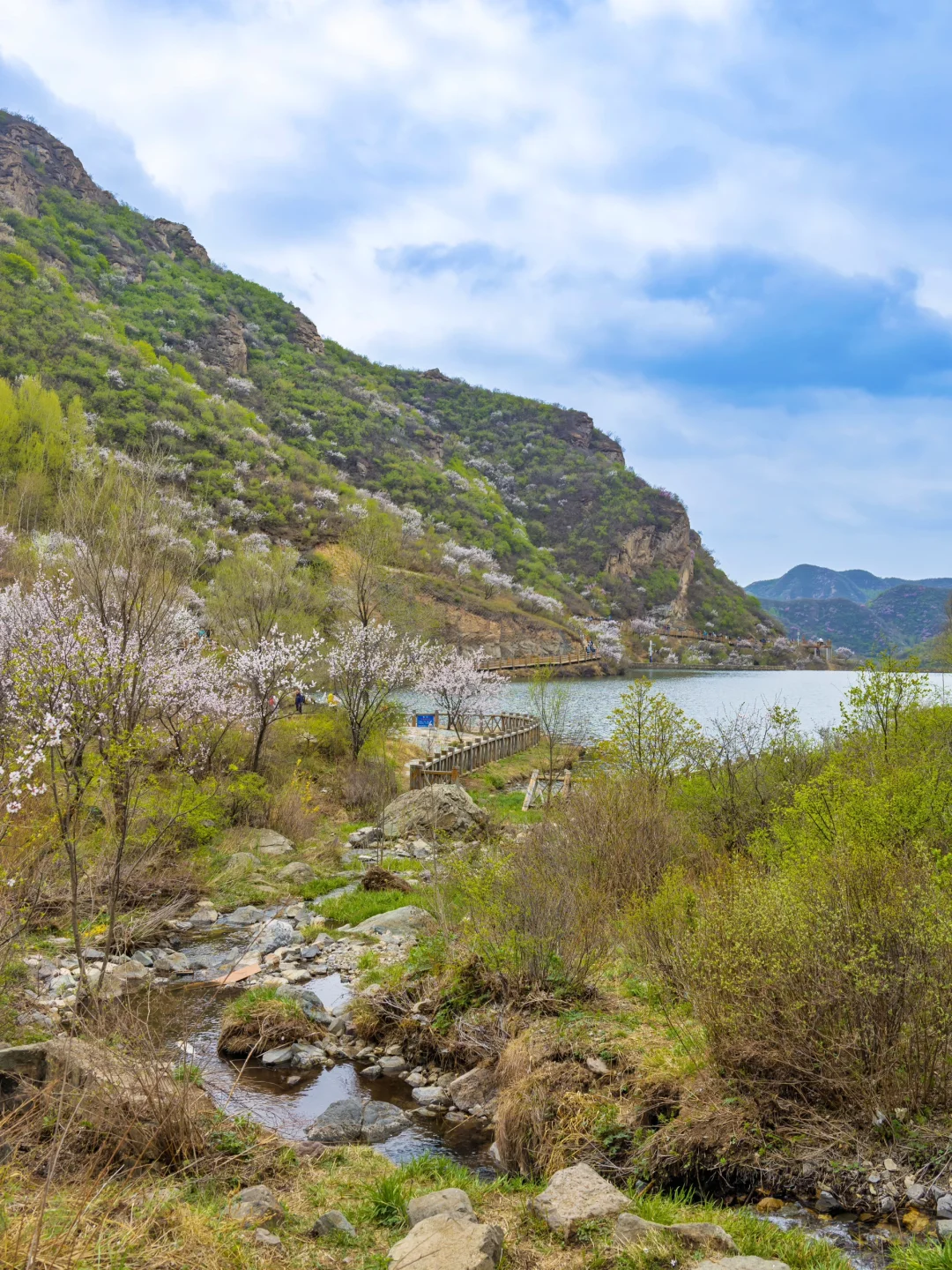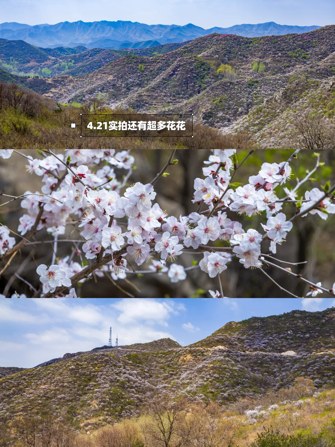 本以为山桃花已经落下帷幕了‼️没想到昌平这个小众村落的群山⛰️因为海拔高竟然现在还是满山花海🌸太适合五一出行了叭‼️