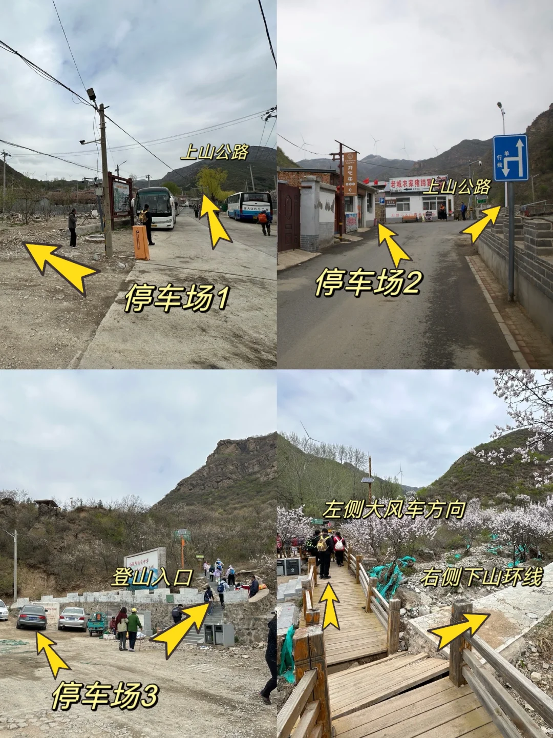 🧭导航长峪城村,到了导航点不要停❌继续往前开到村头,左转是停车场,右转是登山口。如果来得早,可以继续开到山脚下,节省约1.5公里15分钟的公路徒步距离