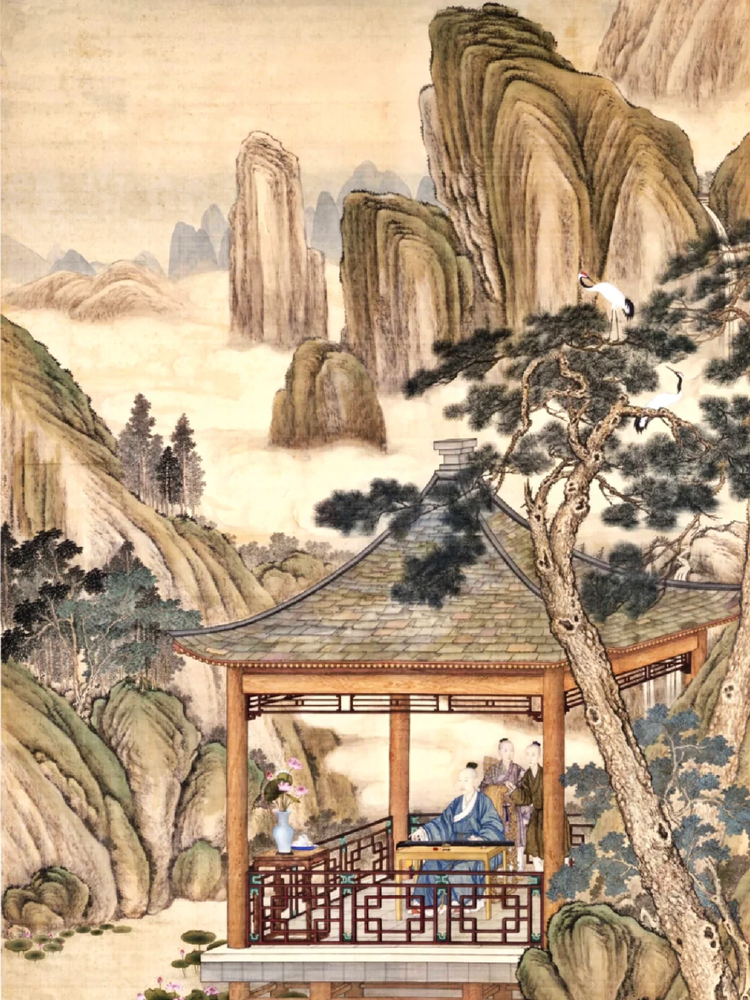 图4、郎世宁画《弘历观荷抚琴图》轴(局部)