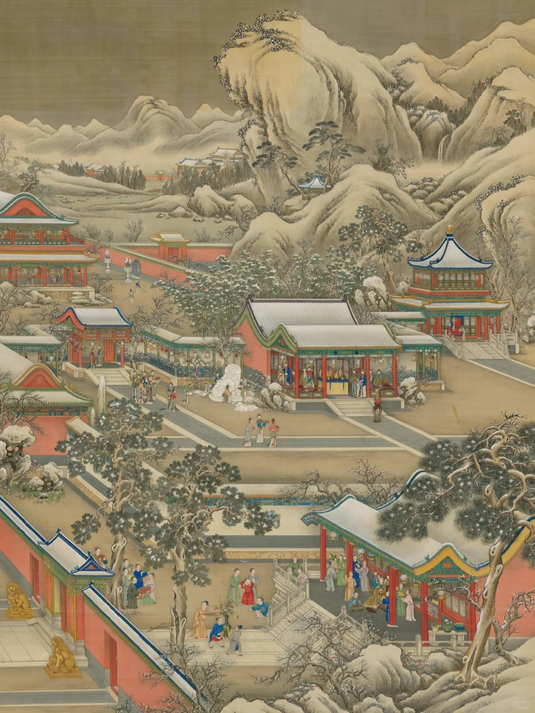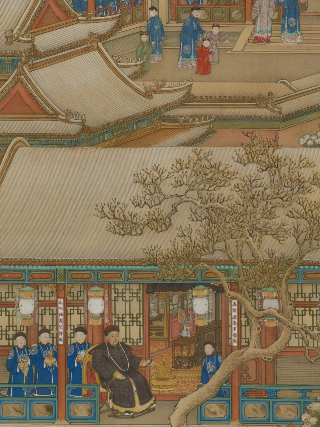 图12、郎世宁、丁观鹏《乾隆帝岁朝行乐图》轴(局部)
