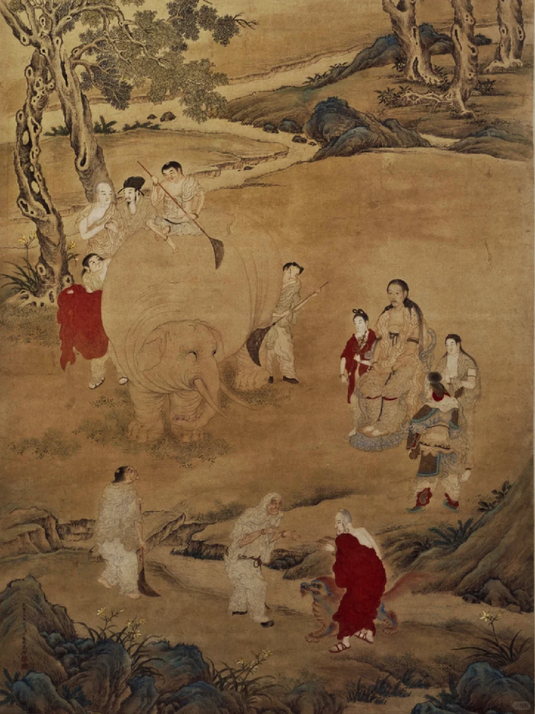 图8、清-丁观鹏画《乾隆皇帝洗象图》轴(局部)