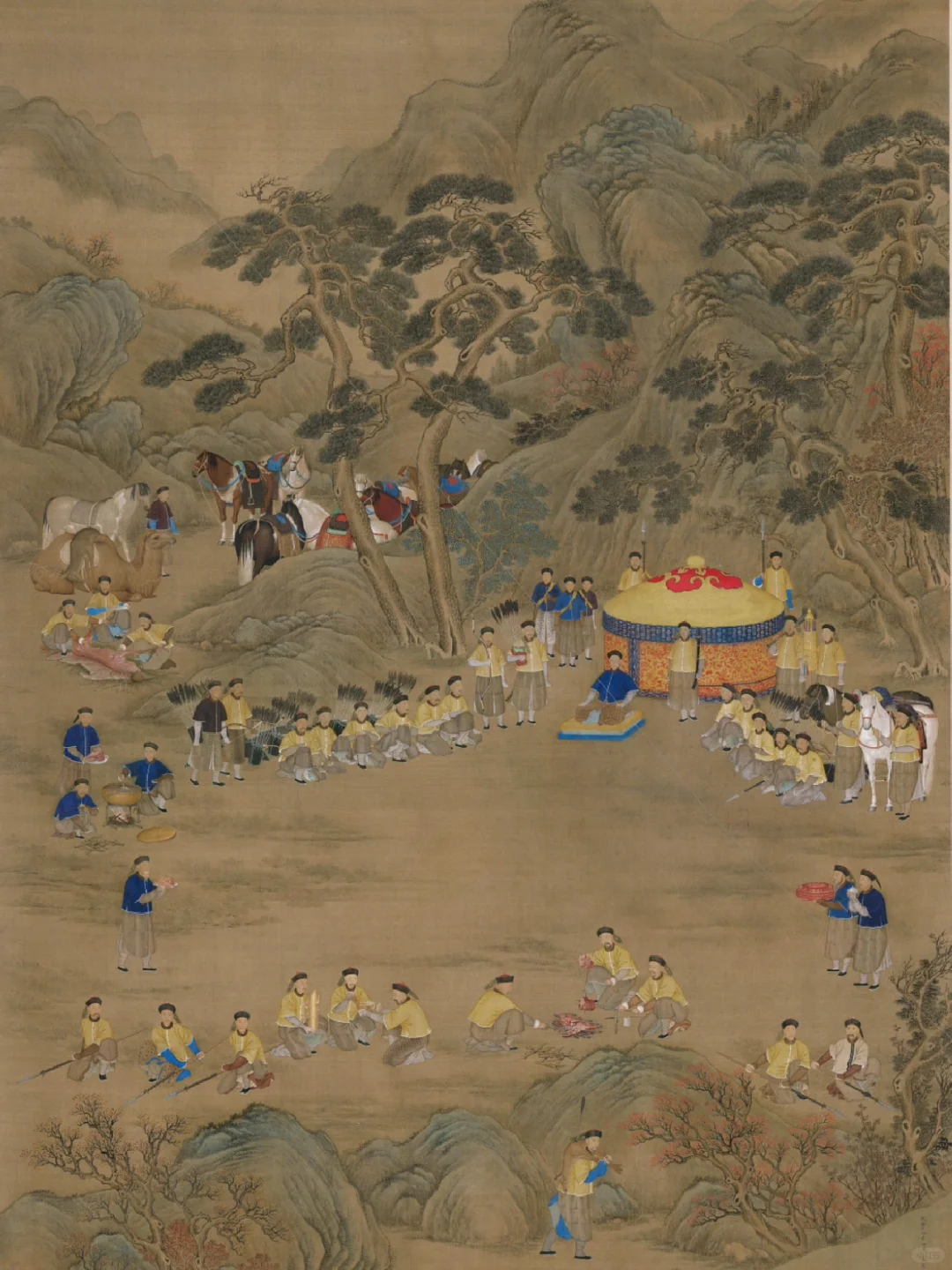 图6、郎世宁画《弘历射猎聚餐图》轴(局部)