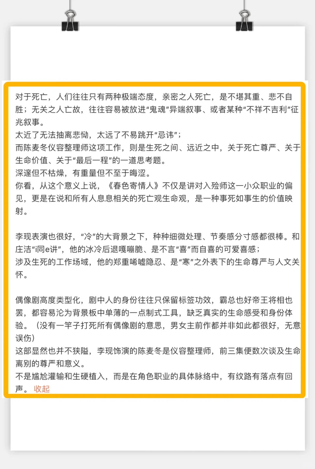你看,从这个意义上说,《春色寄情人》不仅是讲对入殓师这一小众职业的偏见,更是在说和所有人息息相关的死亡观生命观,是一种事死如事生的价值映射。