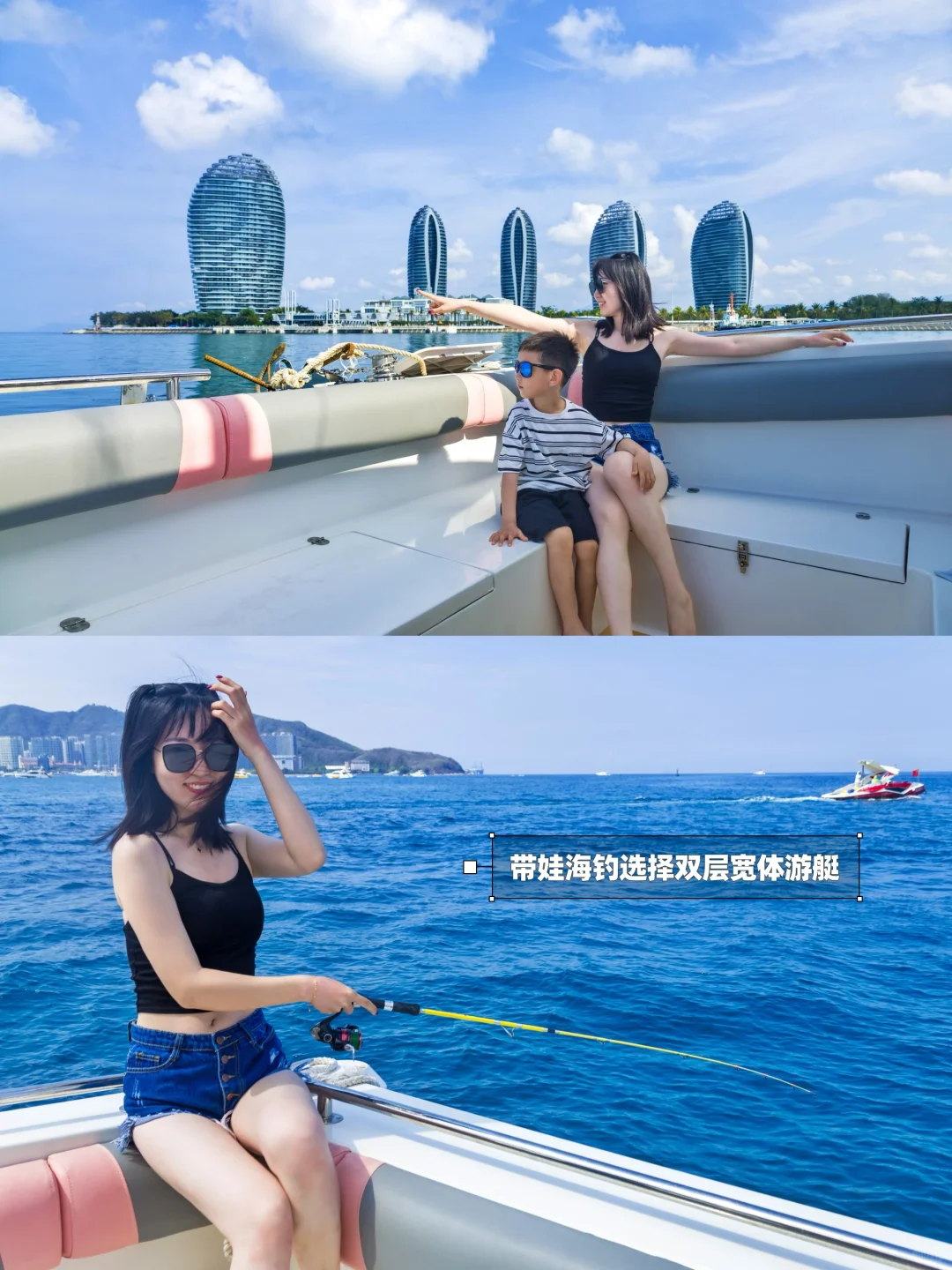 有纯钓鱼船,也有娱乐船,带孩子可以体验海上项目,我们的船可以免费体验摩托艇、海上滑梯,从二楼一下滑进海里游泳真的超爽😁