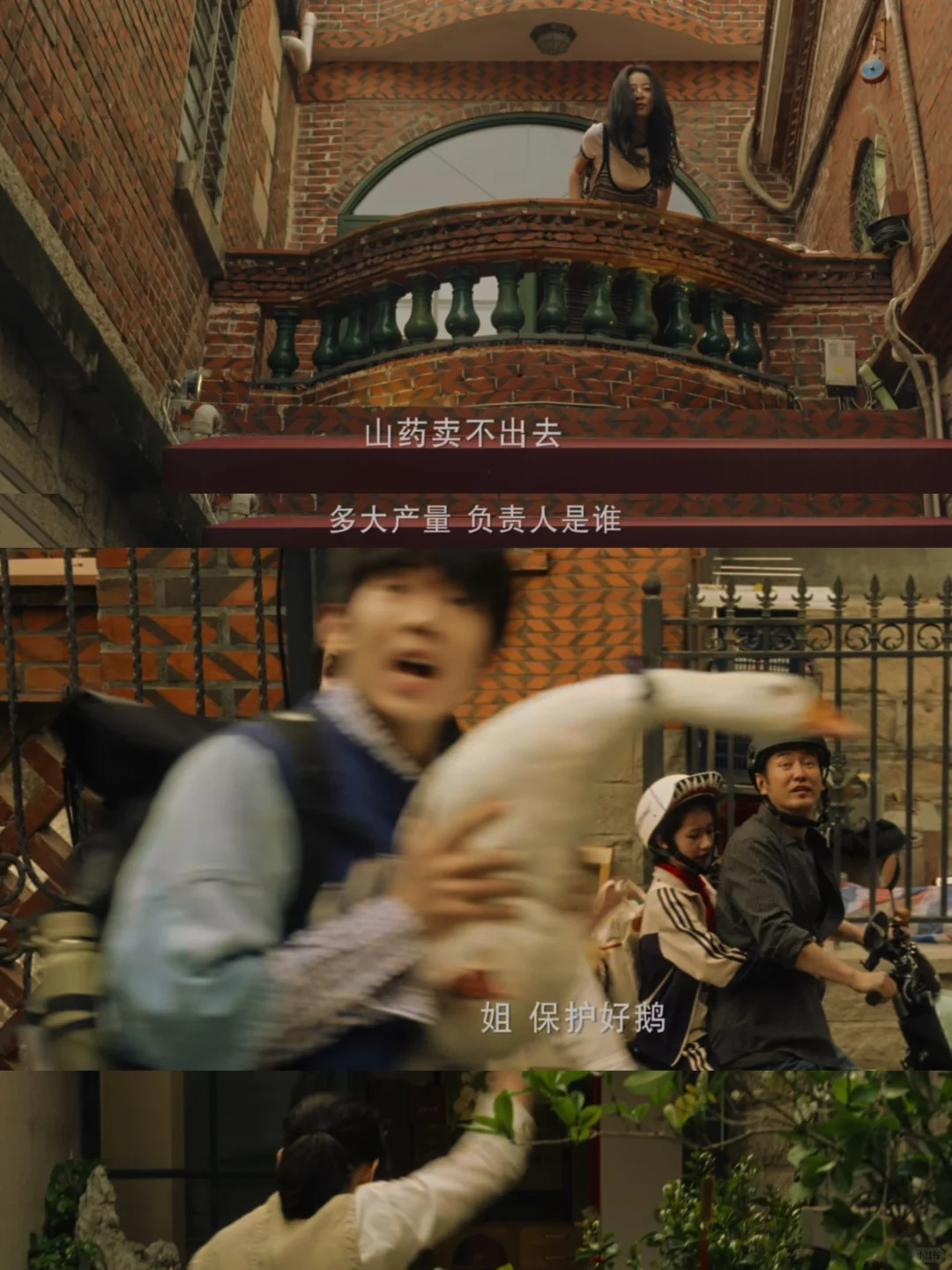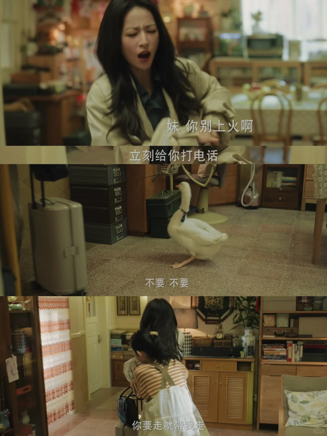 后一次庄洁离家,妹妹抱着她嚎啕、纪三鹅子扑腾着翅膀,廖涛继续骂骂咧咧画风;你看,只是短途离家,不必大动干戈如此爆哭,很喜剧。