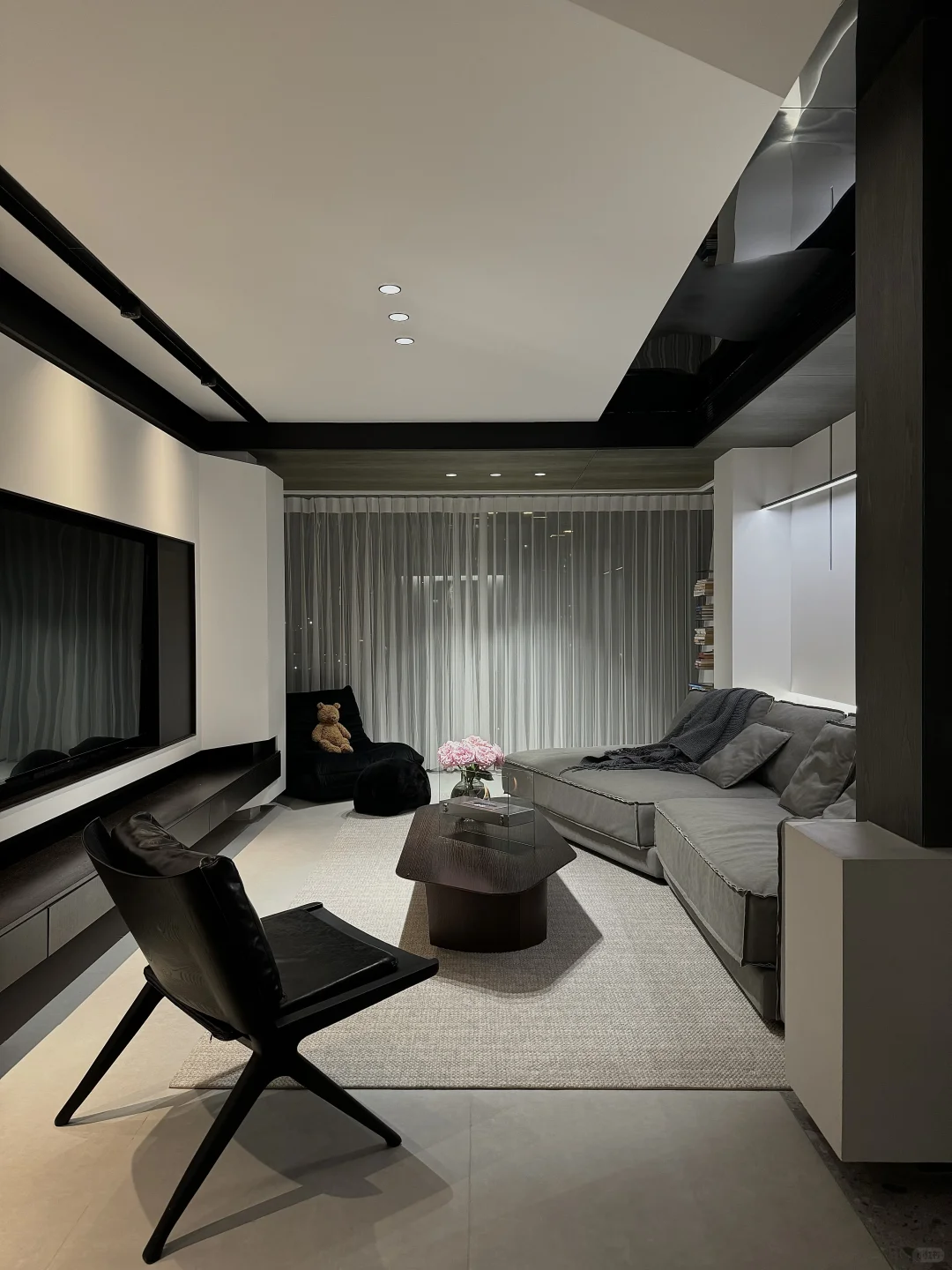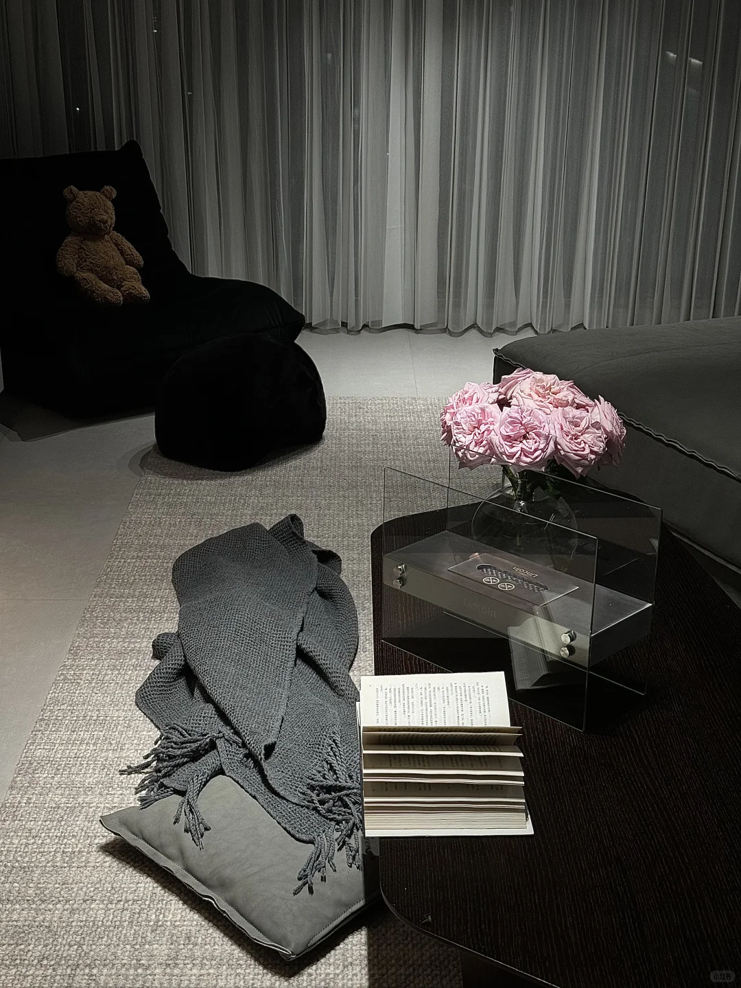 黑白灰下的氛围感 白天阳光透过窗帘洒进客厅 夜晚坐在客厅地毯上 点上壁炉看会儿书 人生本就是不停的感受 29岁 不焦虑别内耗 拥有什么就享受什么