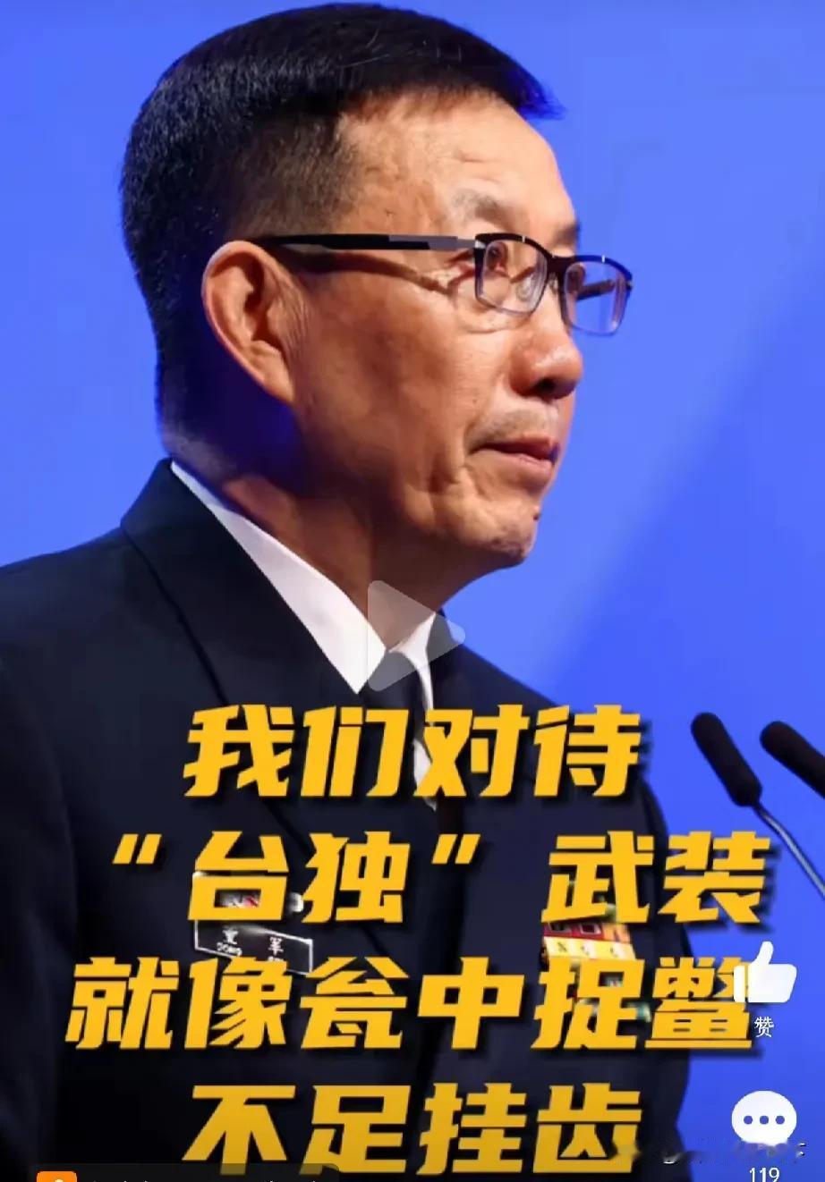 我们的底就是台湾必须回归,外国势力胆敢插入我们会毫不客气,狼狗一起打