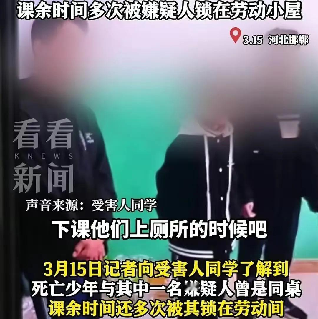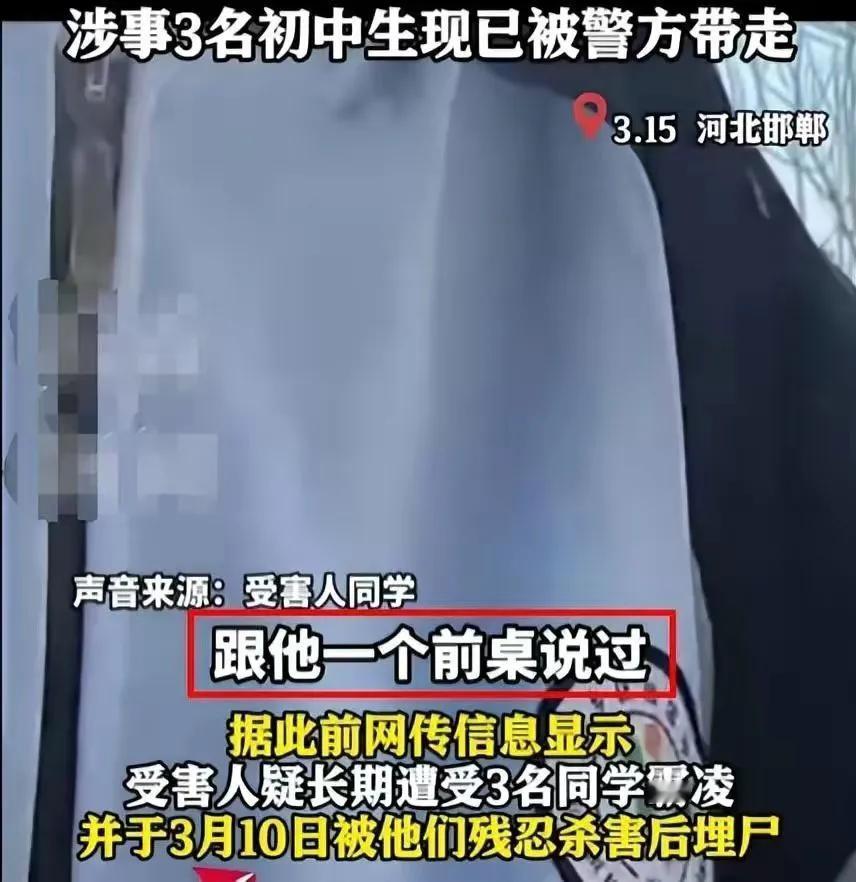 邯郸肥乡遇害孩子的校长,目前并没有官方通知停职的消息,有记者报道3月19日上午,记者联系到肥乡区教体局,该局工作人员称:“没有听说确切校长的停职消息”,当时在案发的第二天,小光的爸爸和家人乘到学校问询校长和老师,孩子是否有被霸凌的现象?当时校长小光的死是一个意外,小光的班主任对他也很好。但是校长这样的说法跟后来记者采访孩子的同学说法完全不一样。小光的同学表示,小光经常被三人关到劳动小屋里边。曾经向同学吐露过想轻生的想法。家属也表示必须给孩子钱,孩子才会高高兴兴的去上学。在事发之后有气质成为堵在学校门口想采访学校的老师和校长,但是并没有见到老师和校长本人,如今孩子被爆出死状惨烈,校长没有被停职怎么也说不过去。孩子的死学校是逃脱不了关系的,长期遭受霸凌学校和老师竟然毫不知情。在出事之后还为三名凶手开脱。这样的情况,这样的事情是绝对不能容忍的,希望相关部门及时处理#邯郸活埋同学案# #邯郸学生后续#