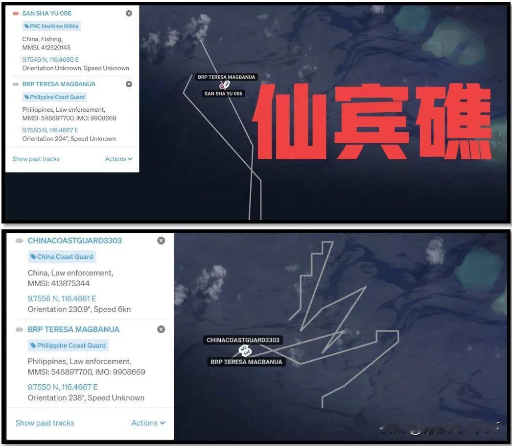 中菲两国海警船昨天清晨6点左右,在仙宾礁海域追逐过程中险些发生碰撞!两船最近距离50米!菲方船只为日本援助的97米级“马格巴奴亚”号大型巡逻舰,我方船只为海警3303和琼三沙渔00006! 综合各方消息,截止今天6月3号,菲律宾大型巡逻舰“马格巴奴亚”已经在南海仙宾礁礁盘内坐滩47天,根据菲律宾海警队的说法,该船之所以在仙宾礁礁盘内赖着不走,是因为要保护菲律宾科考队员在仙宾礁礁盘内,对珊瑚礁开展科学考察! 在过去47天中,中国海警一直对菲方的这一行动保持高度警惕和戒备。中国海警3303船和两艘中国大型渔船一直对菲船保持高压态势,而菲律宾船只也不停地在仙宾礁内绕圈圈,与我方船只进行猫捉老鼠的游戏! 而根据外媒的报道,在昨天清晨6:00左右,中国海警3303船和琼三沙鱼0006船,再次发起冲击菲律宾船只,两国船只在此过程中发生近距离接触,最近距离小于50米,距离碰撞仅有咫尺之遥! 而截至目前为止,菲律宾海警对“马格巴奴亚”号大型巡逻舰的下一步行动上没有做出任何说明,是准备一直在仙宾礁赖着不走,还是在未来某天离开仙宾礁?菲律宾海警一直默不作声! 外界普遍猜测菲律宾海警是否想复制1999年5月9日,趁中方不备,将马德雷山号坦克登陆舰偷偷拖到仁爱礁搁浅的这一幕,并在仙宾礁复制搁浅占礁的闹剧? 如果菲方真的这么想,那我只能说他们真的是异想天开!