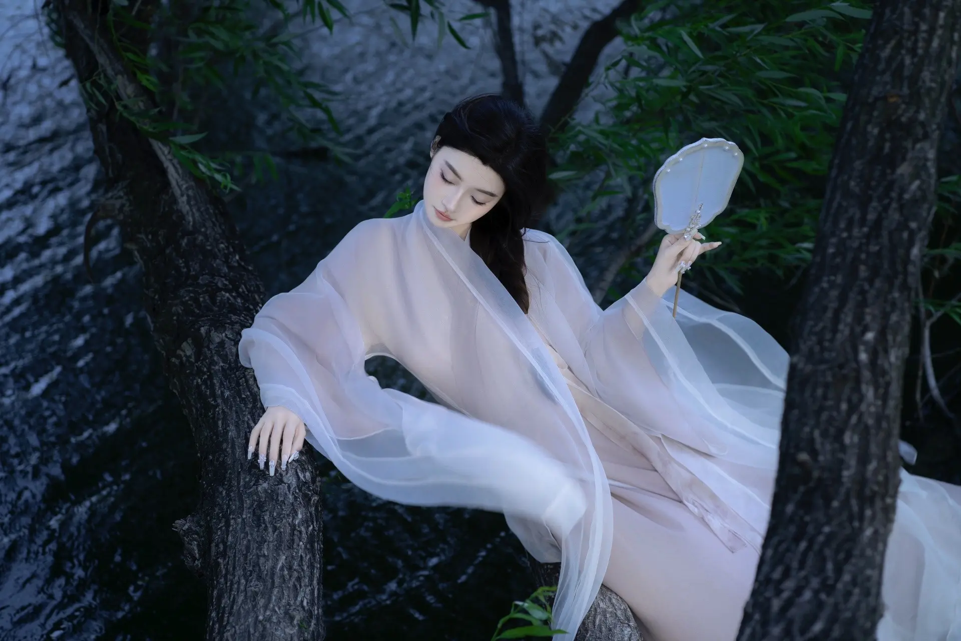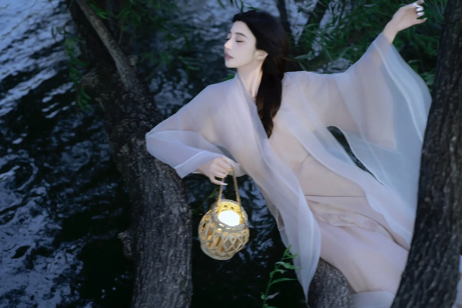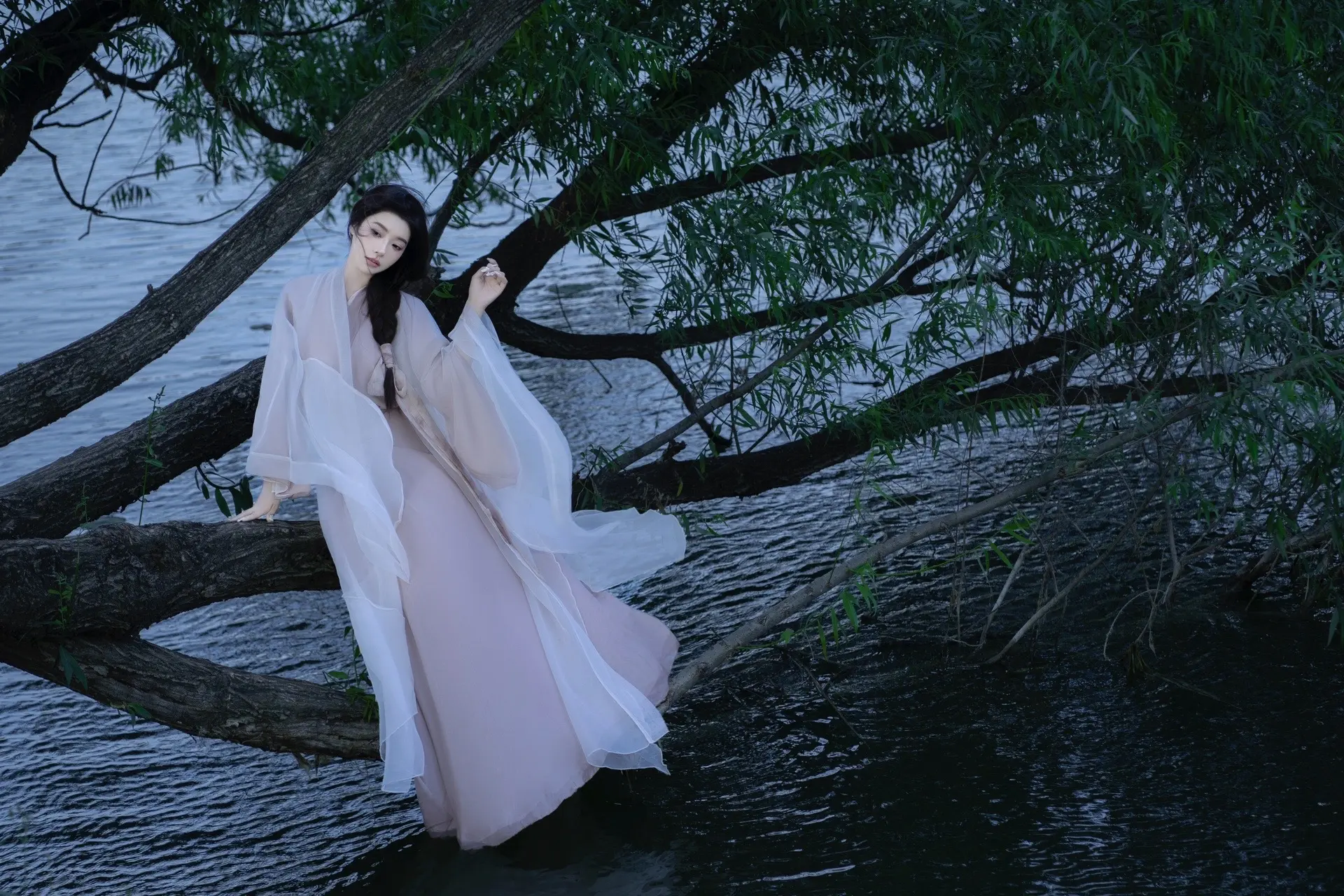 晚风吻尽荷花叶 任我醉倒在池边~ 妆造: 店铺