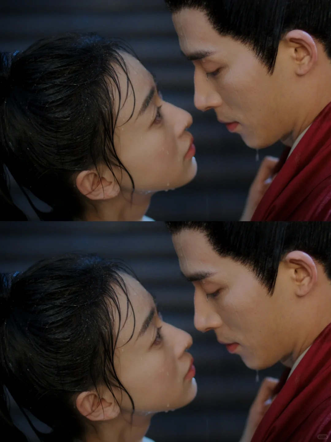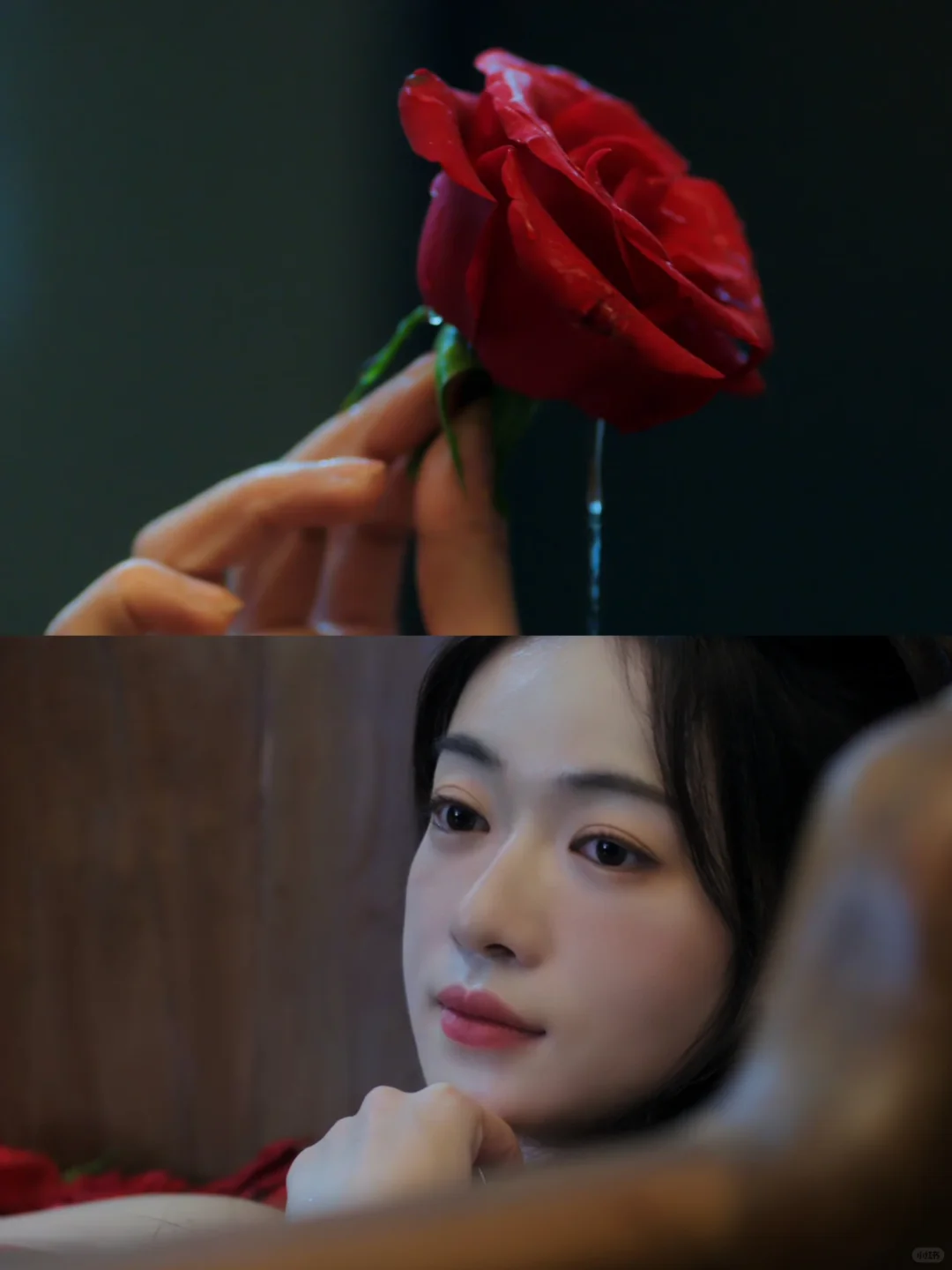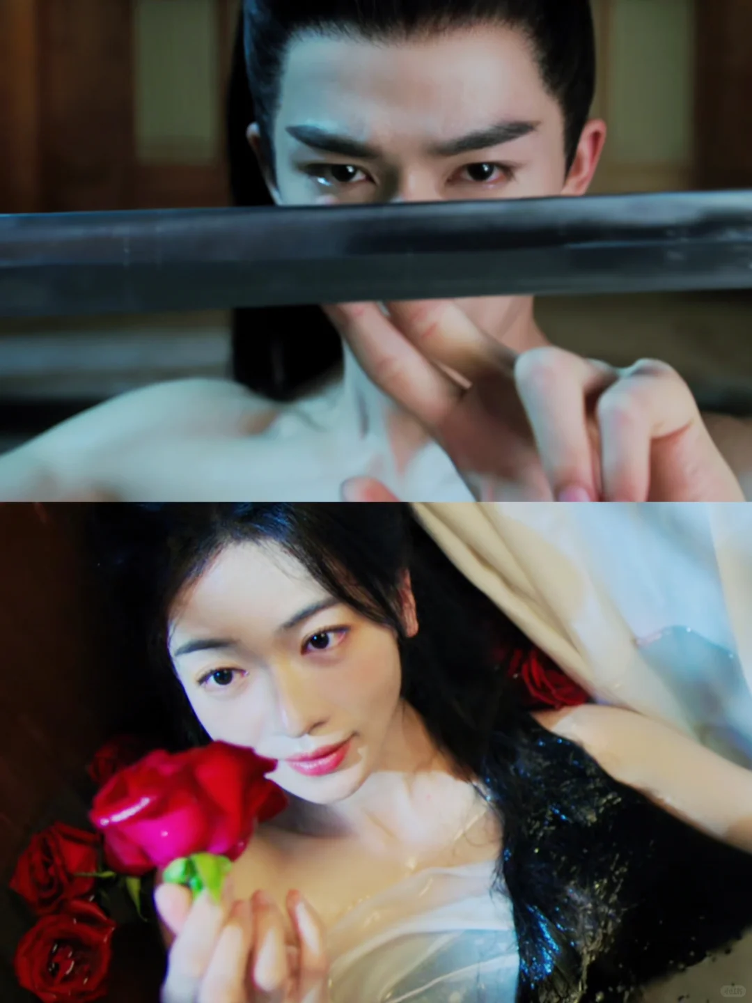 这俩,一个沐浴时对着玫瑰越看越甜越脸红心跳、一个雨中赤膊练剑闪转腾挪转圈圈,回忆思念情浓,无一字说其他、但满屏又甜又浓又清的“爱与荷尔蒙”气息~